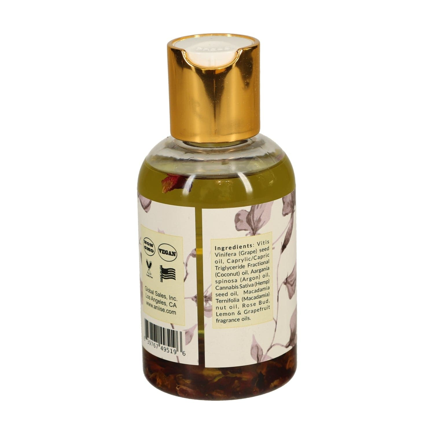 Grapeseed Oil, Coconut Oil, Argan Oil, Hemp Seed Oil, Macadamia Oil, Rose Bud, Fragrance Oil.