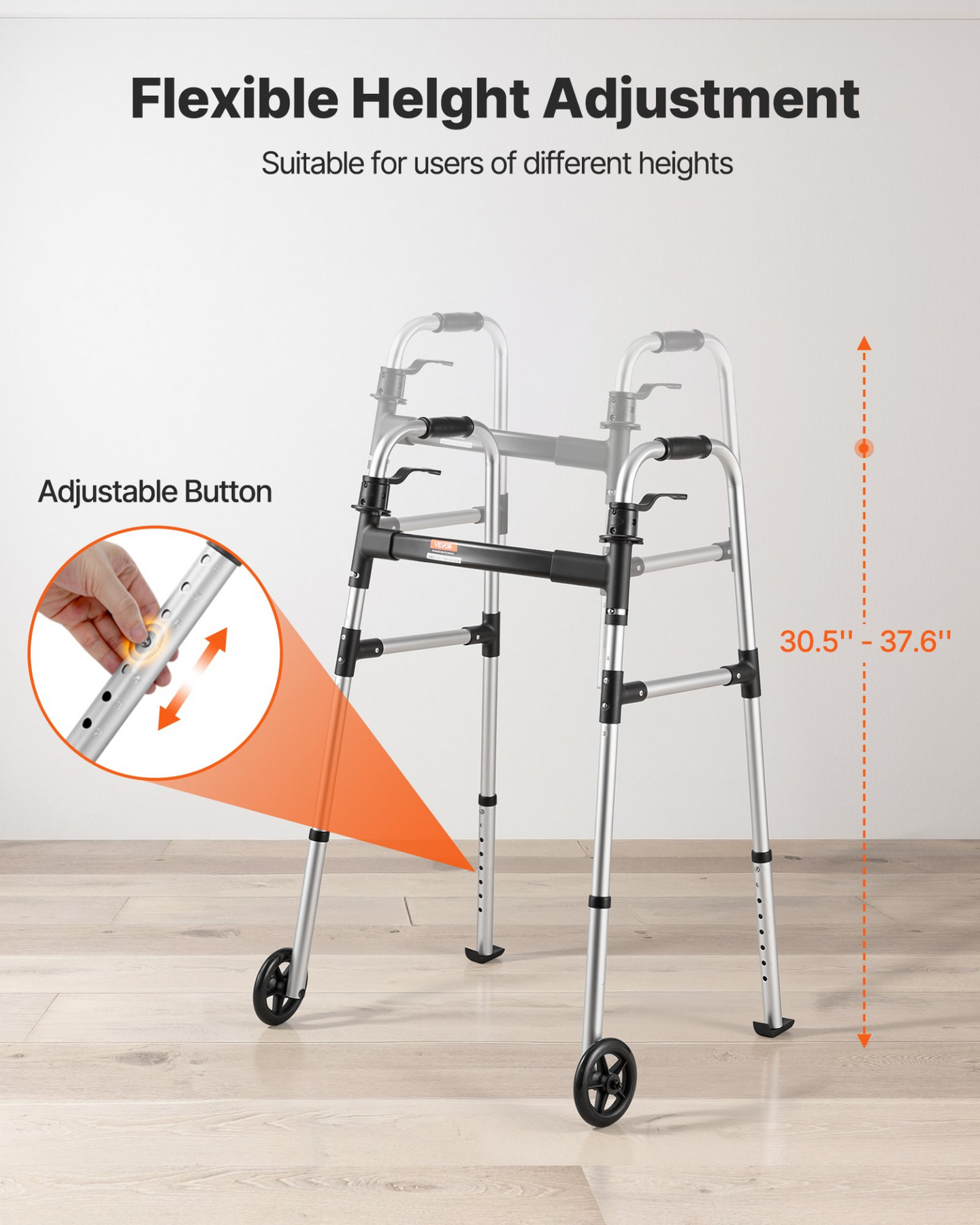 Back to VEVOR Folding Walker with 5" Wheels 2‑Button Foldable Walker, 8‑Level Adjustable Height