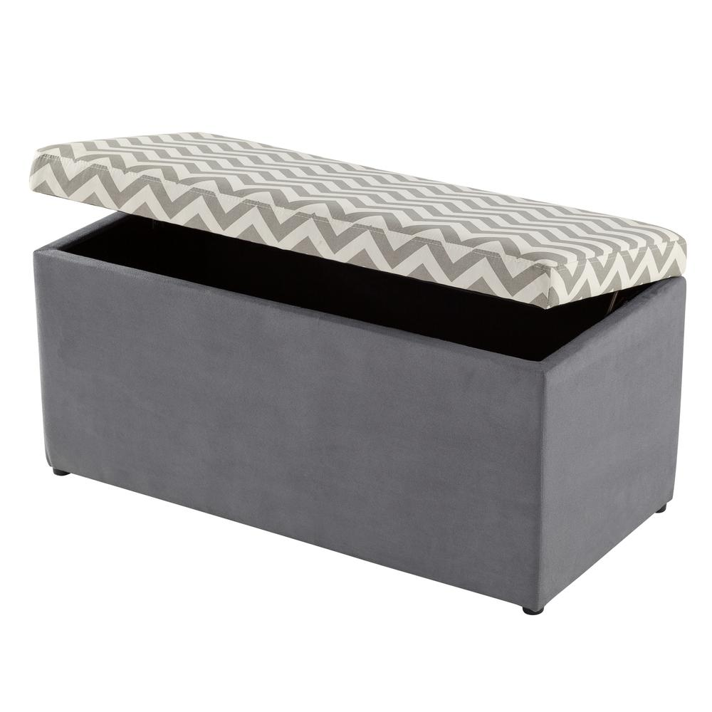The Emily Gray Toy Chest is the perfect solution for keeping your child's playroom or bedroom organized and clutter-free. Featuring a solid gray fabric design with a stylish gray and white chevron fabric padded top, this toy chest will not only provide ample storage space but also add a touch of elegance to any room.
