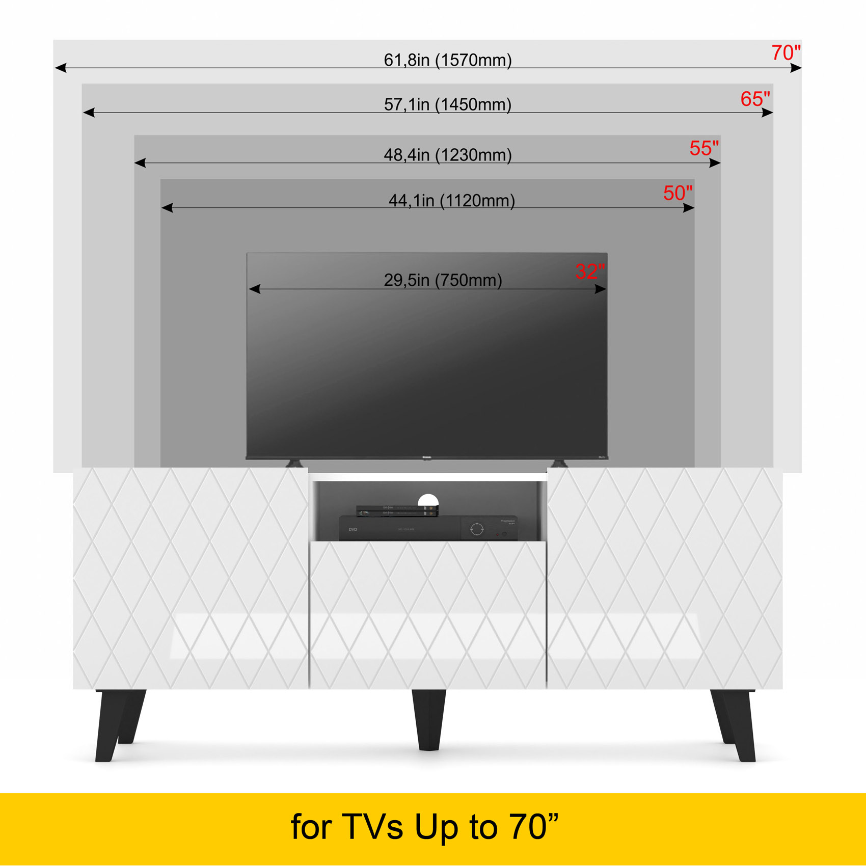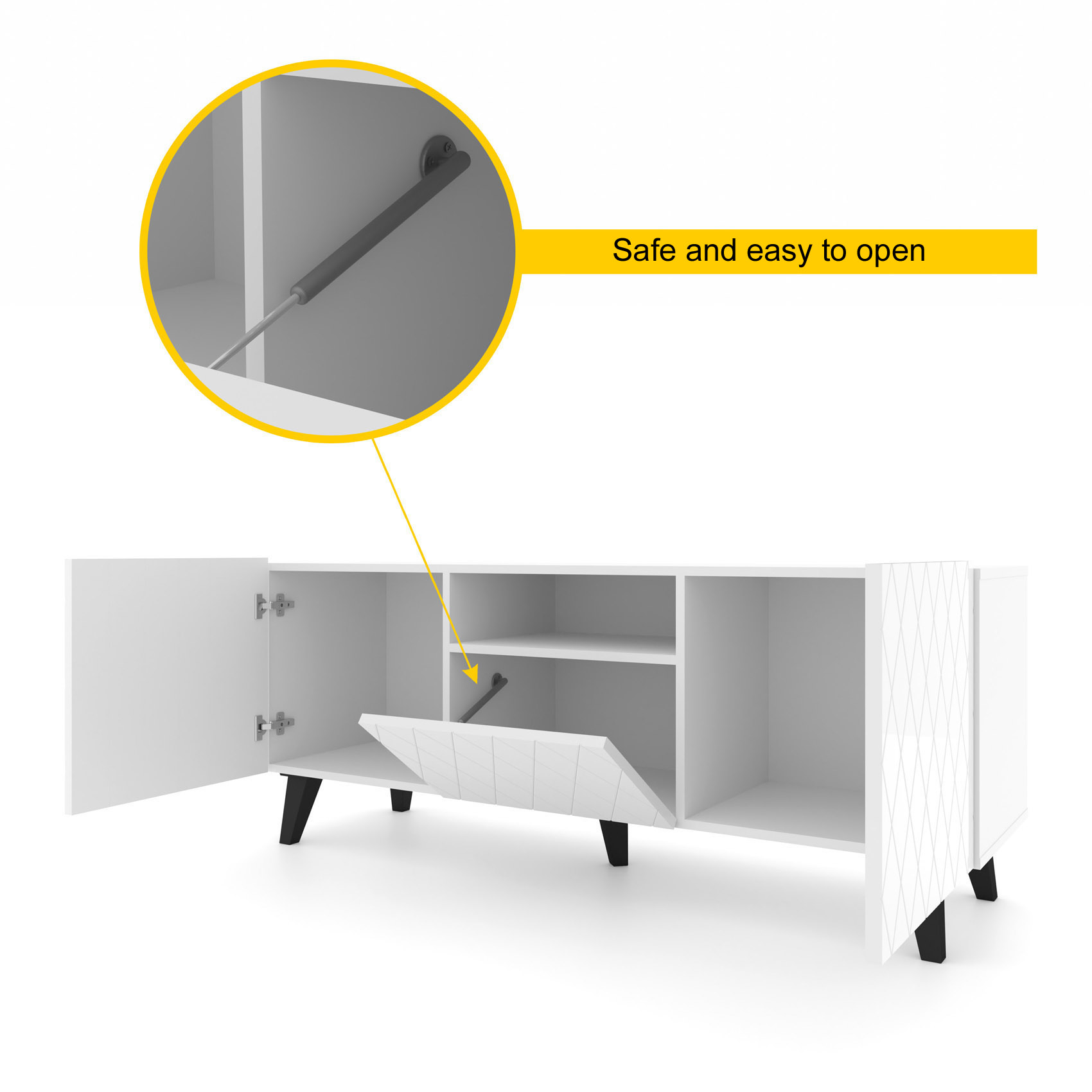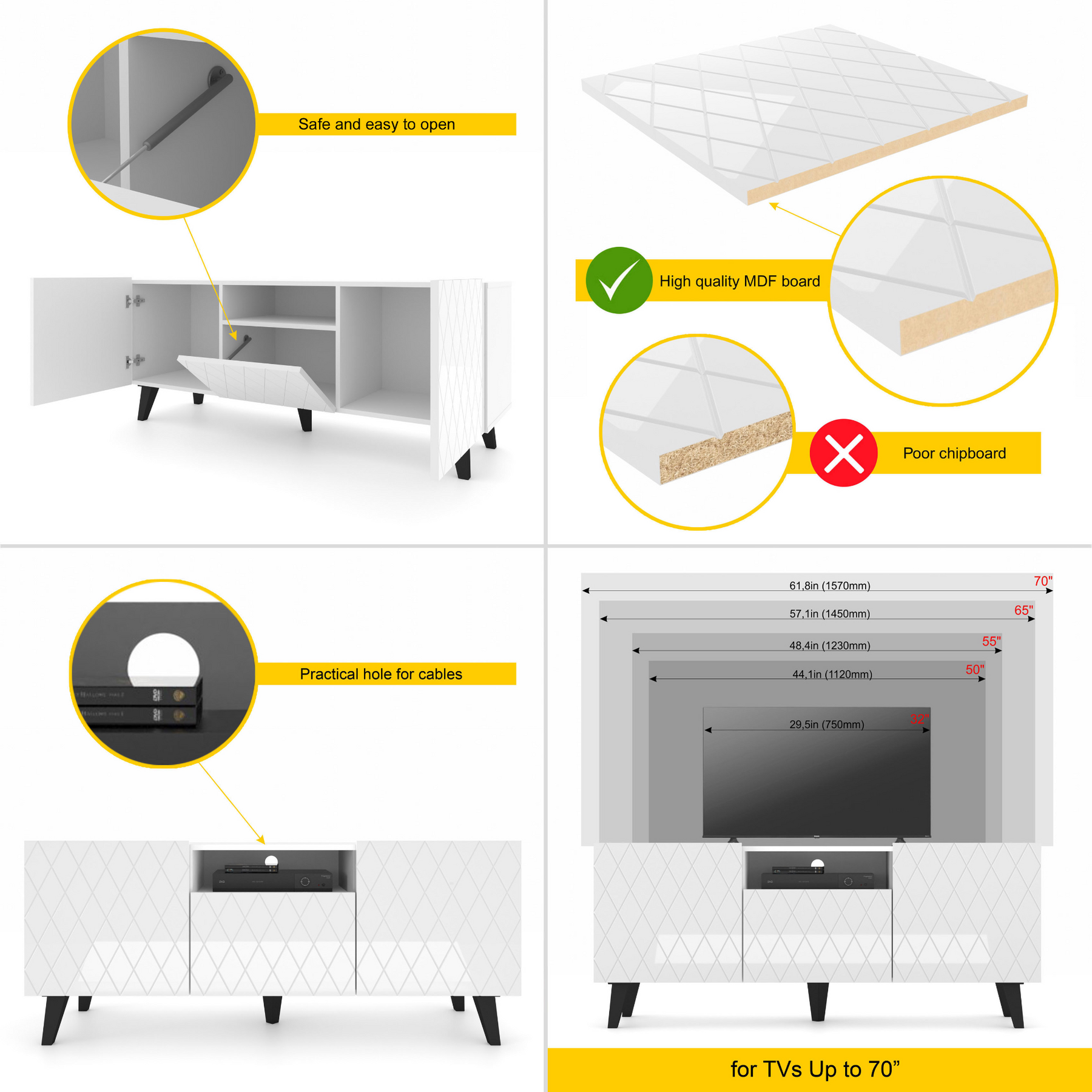 Functional Storage: This TV stand includes three doors and an open shelf, providing ample storage space for your entertainment essentials.