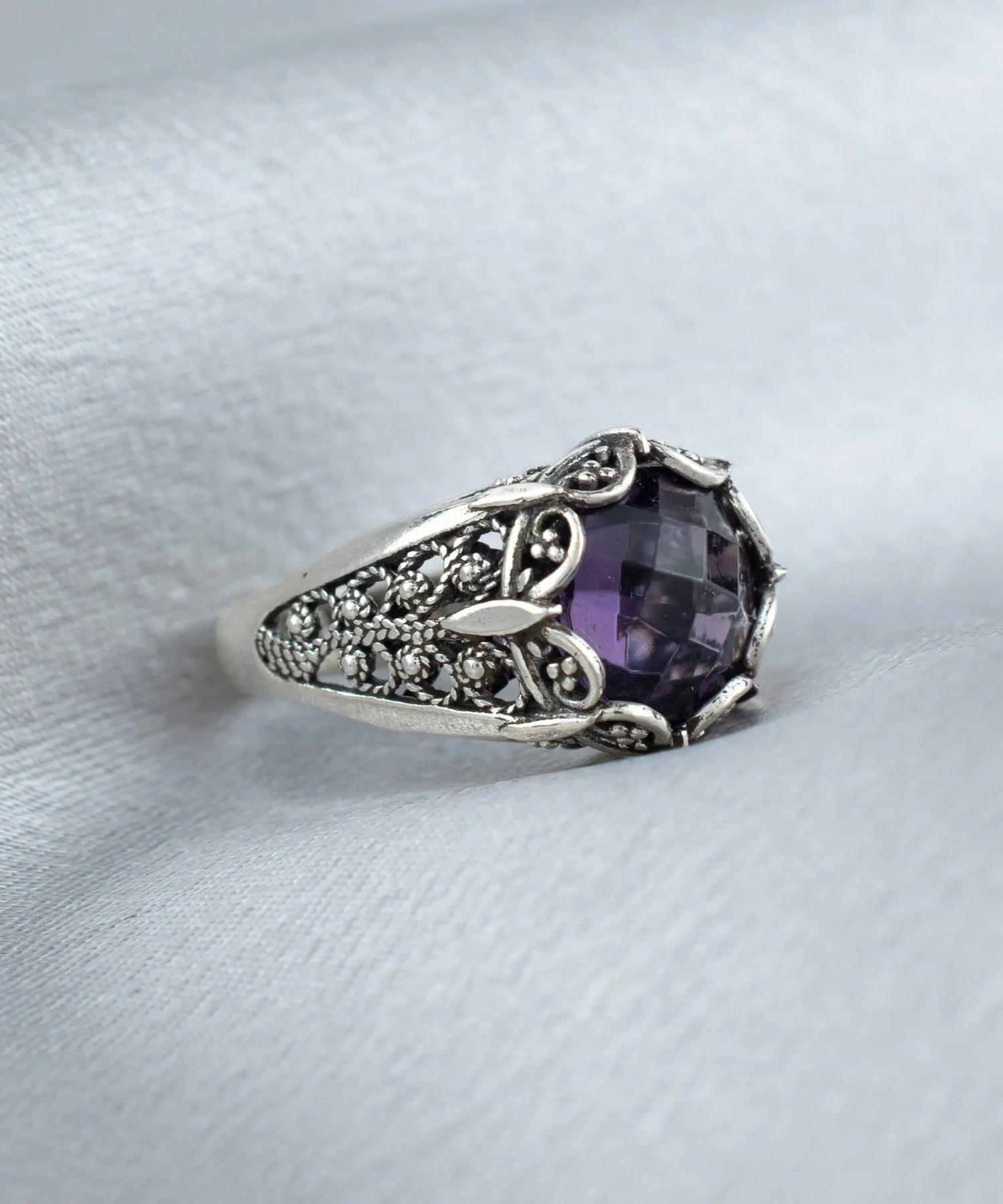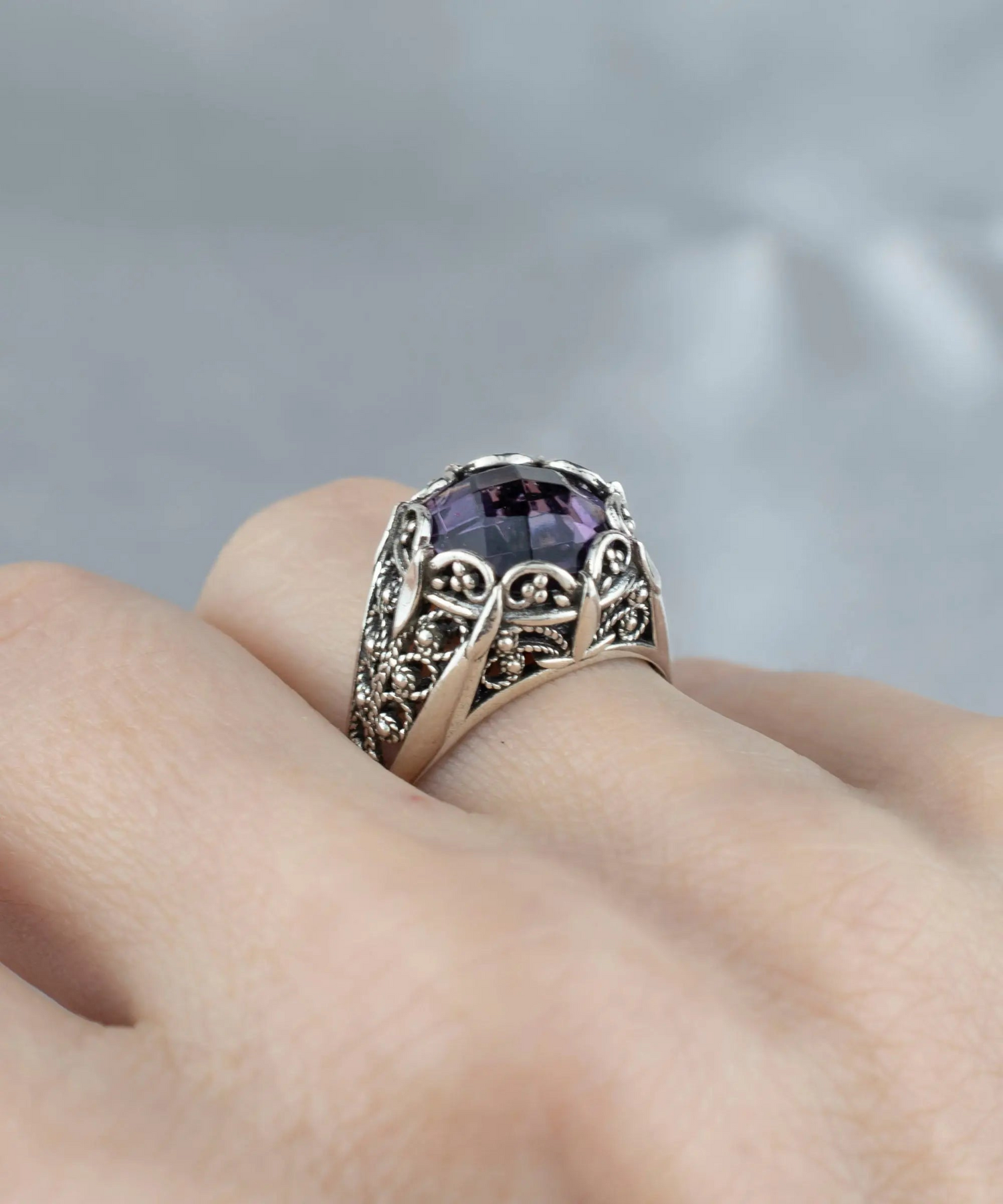 Elevate Your Style with the Filigree Art Amethyst Gemstone Women Silver Cocktail Ring