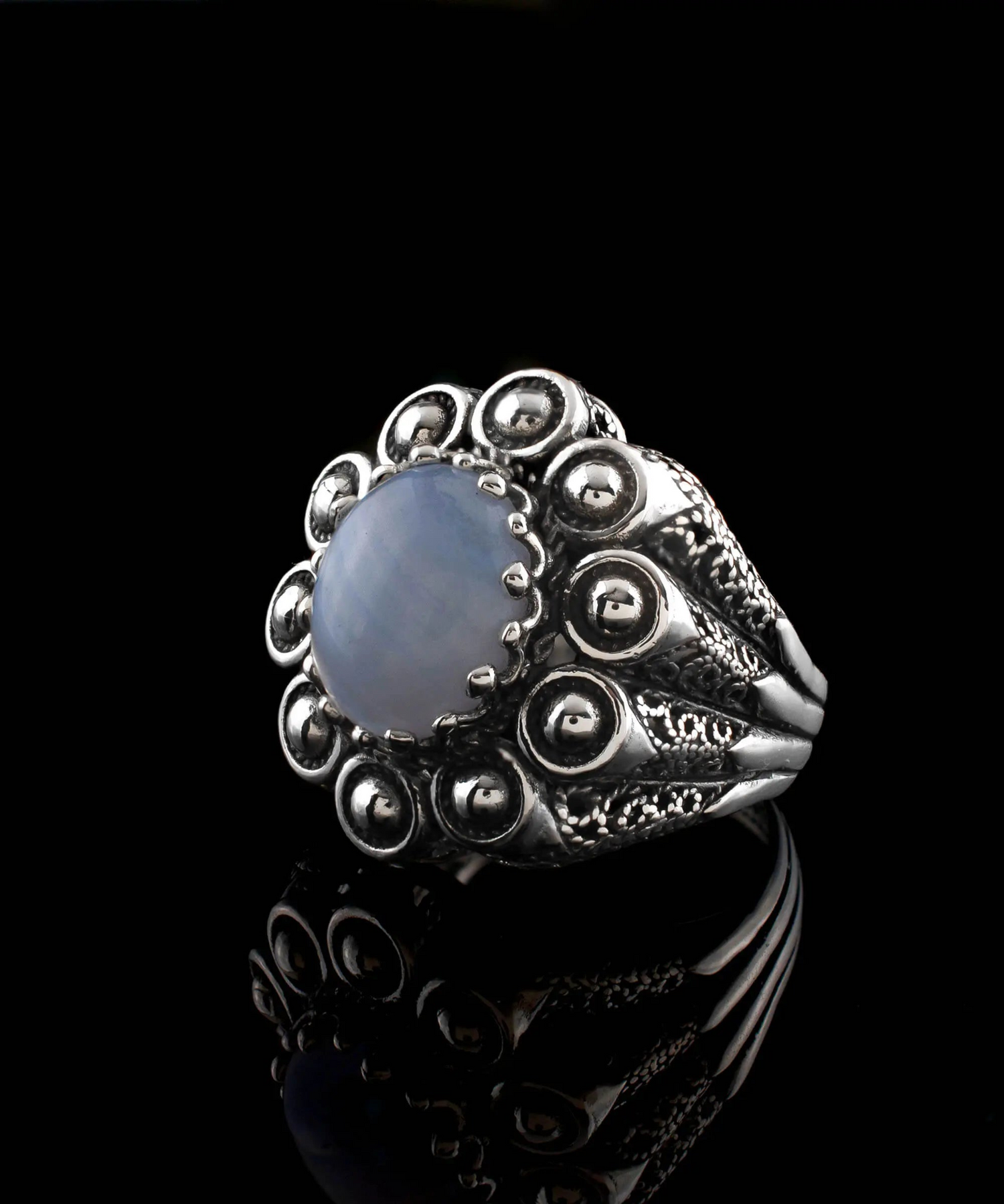 Introducing our Filigree Art Blue Lace Agate Gemstone Women Statement Dome Ring, a truly one-of-a-kind piece that combines intricate filigree art with a beautiful Blue Lace Agate gemstone. Crafted from high-quality 925 sterling silver, this ring features an oxidized antique finish that adds a touch of vintage charm.