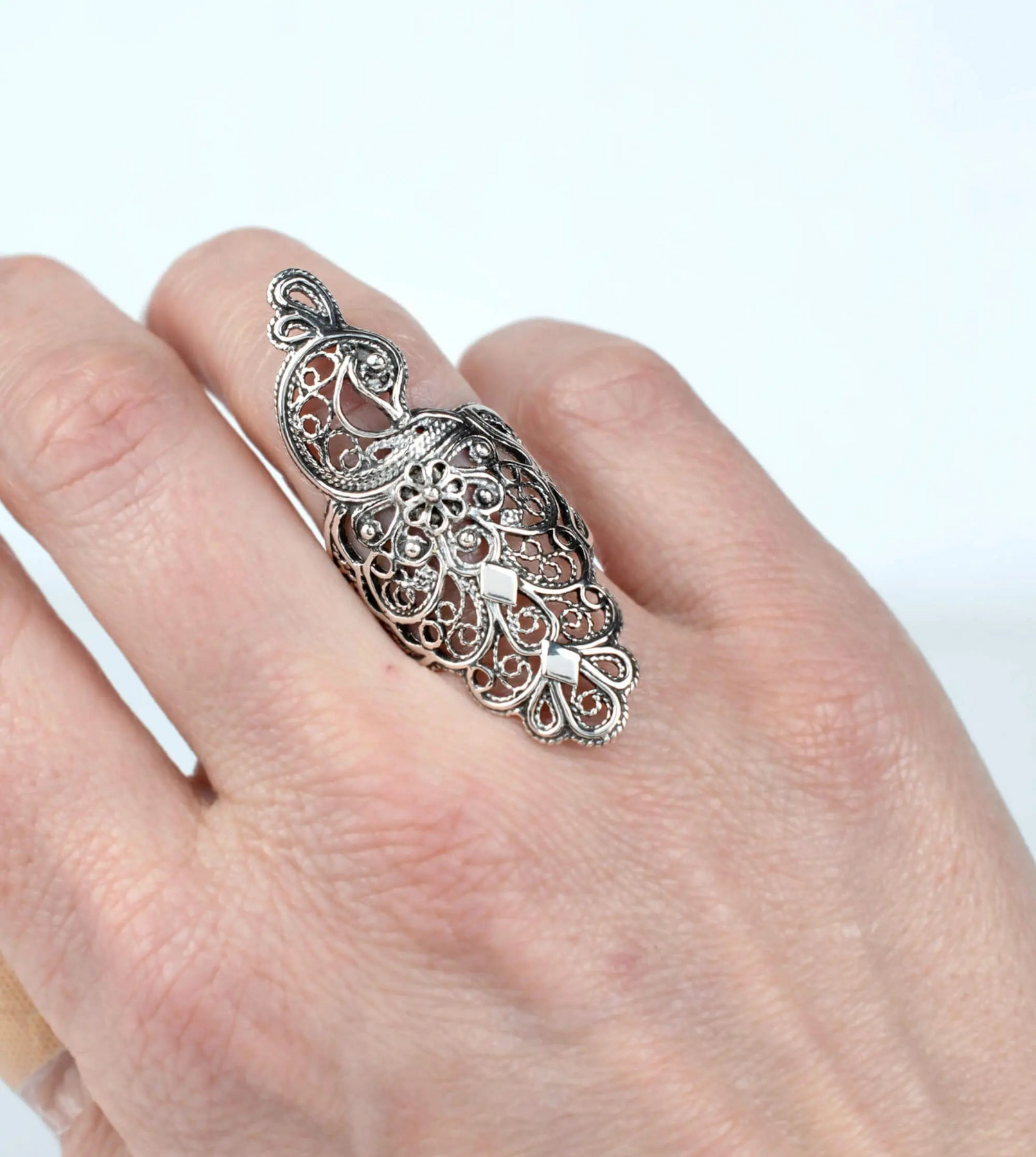 Filigree Art Peacock Design Women Silver Statement Ring - Elegant and Eye-Catching