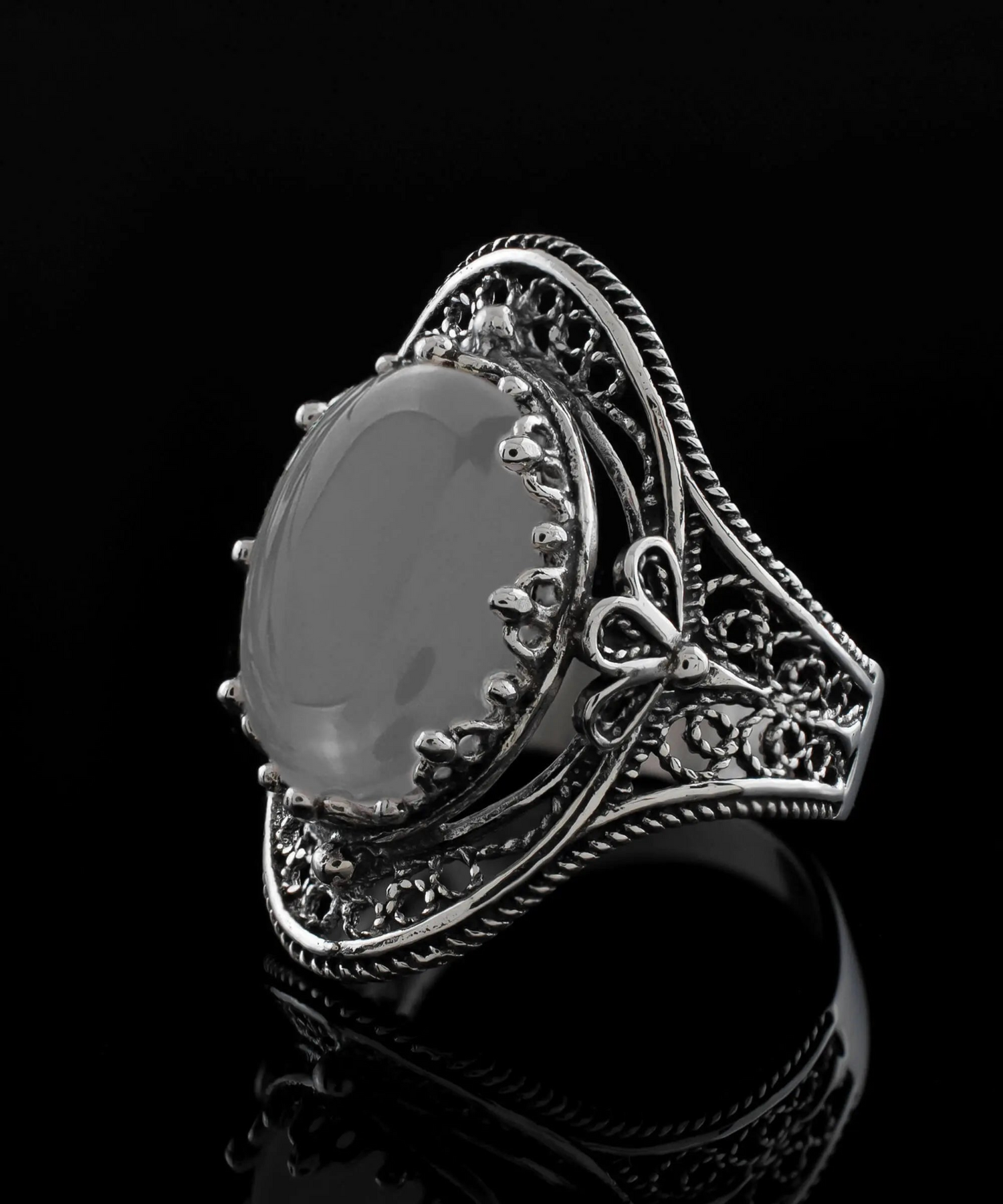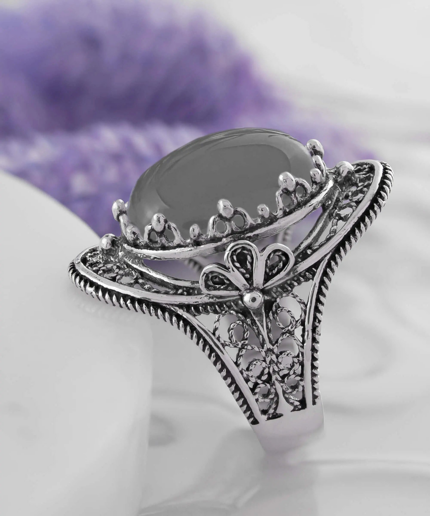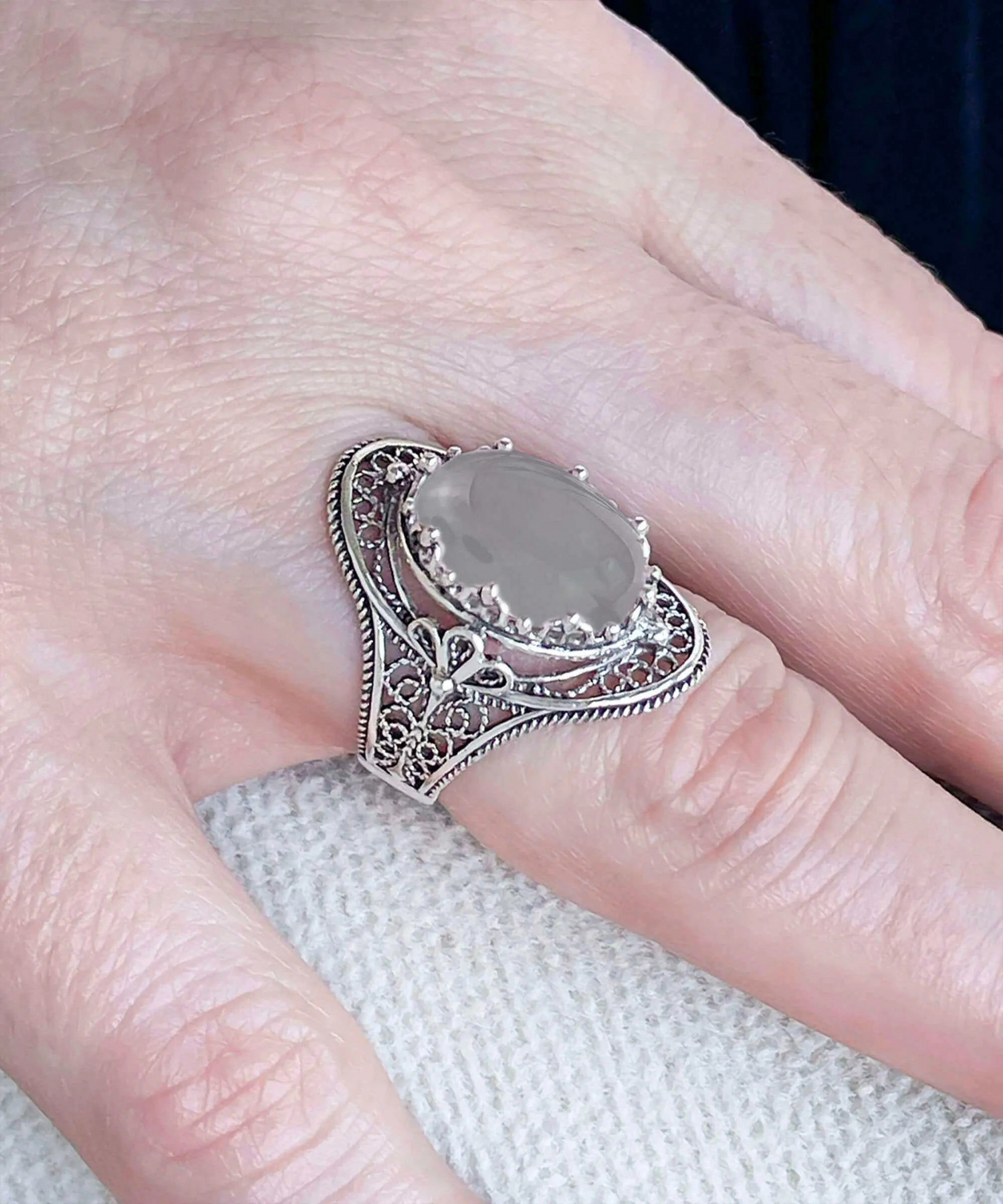 This beautiful filigree art statement ring is meticulously handcrafted from sterling silver, then oxidized and polished to a high shine. Its minimalistic design makes it a versatile accessory that pairs well with any outfit.
