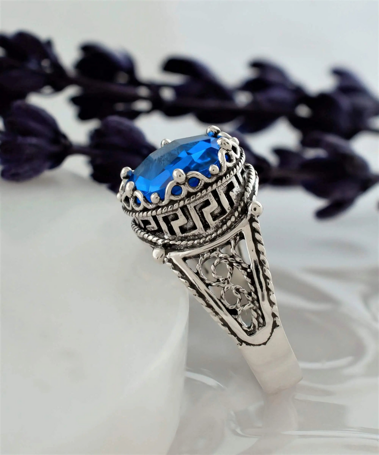 Elevate your style with this exquisite Greek key pattern filigree cocktail ring