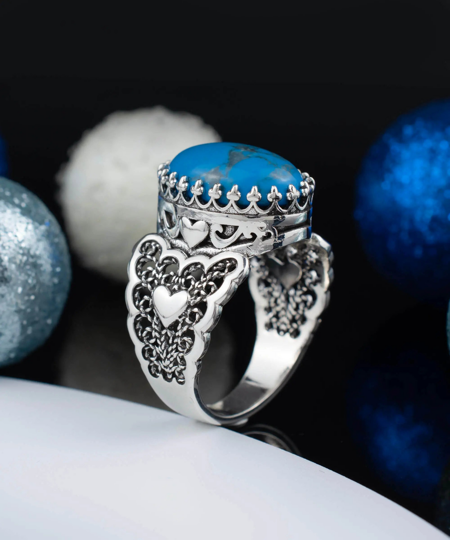 Make a Statement with Our Turquoise Gemstone Double Heart Detailed Filigree Art Ring