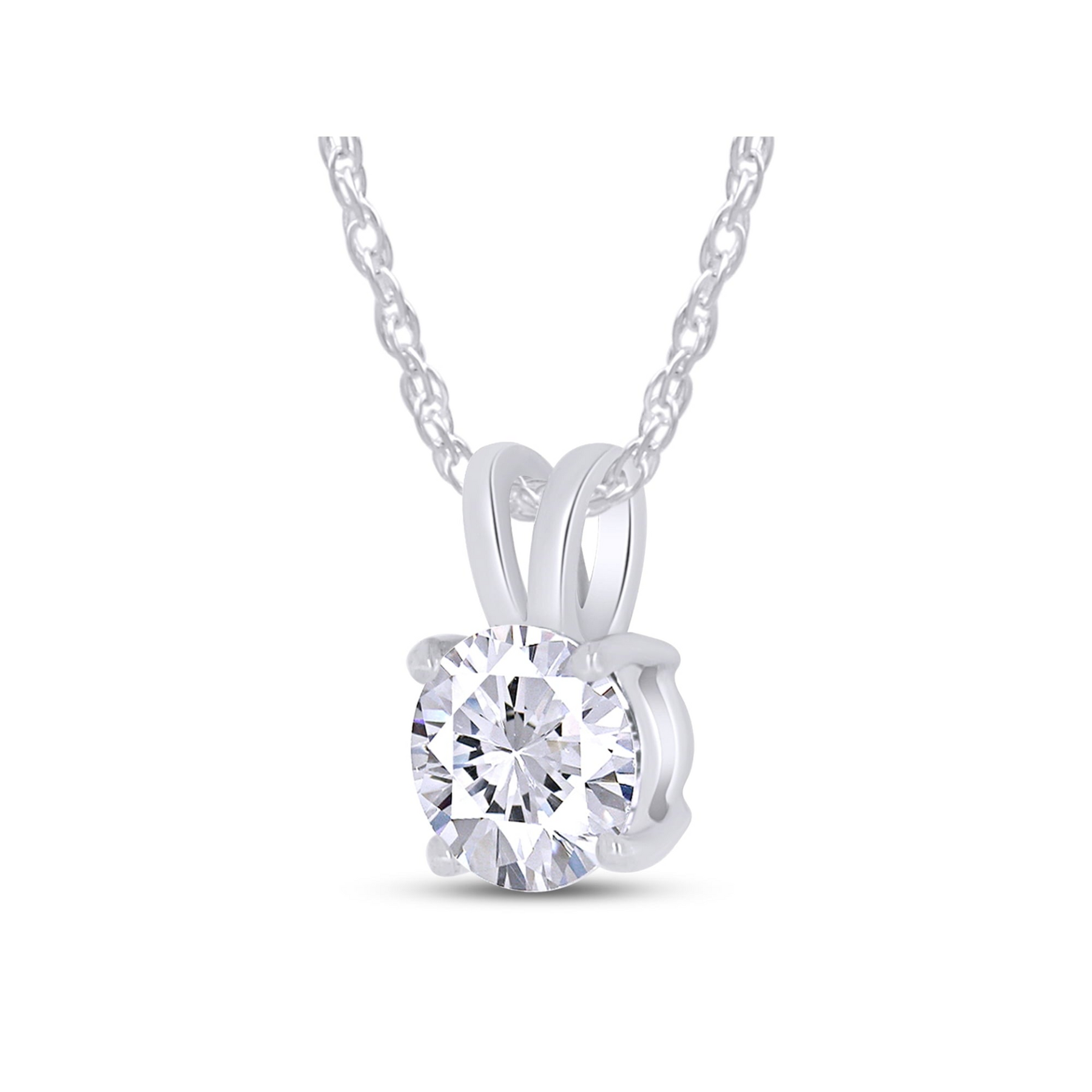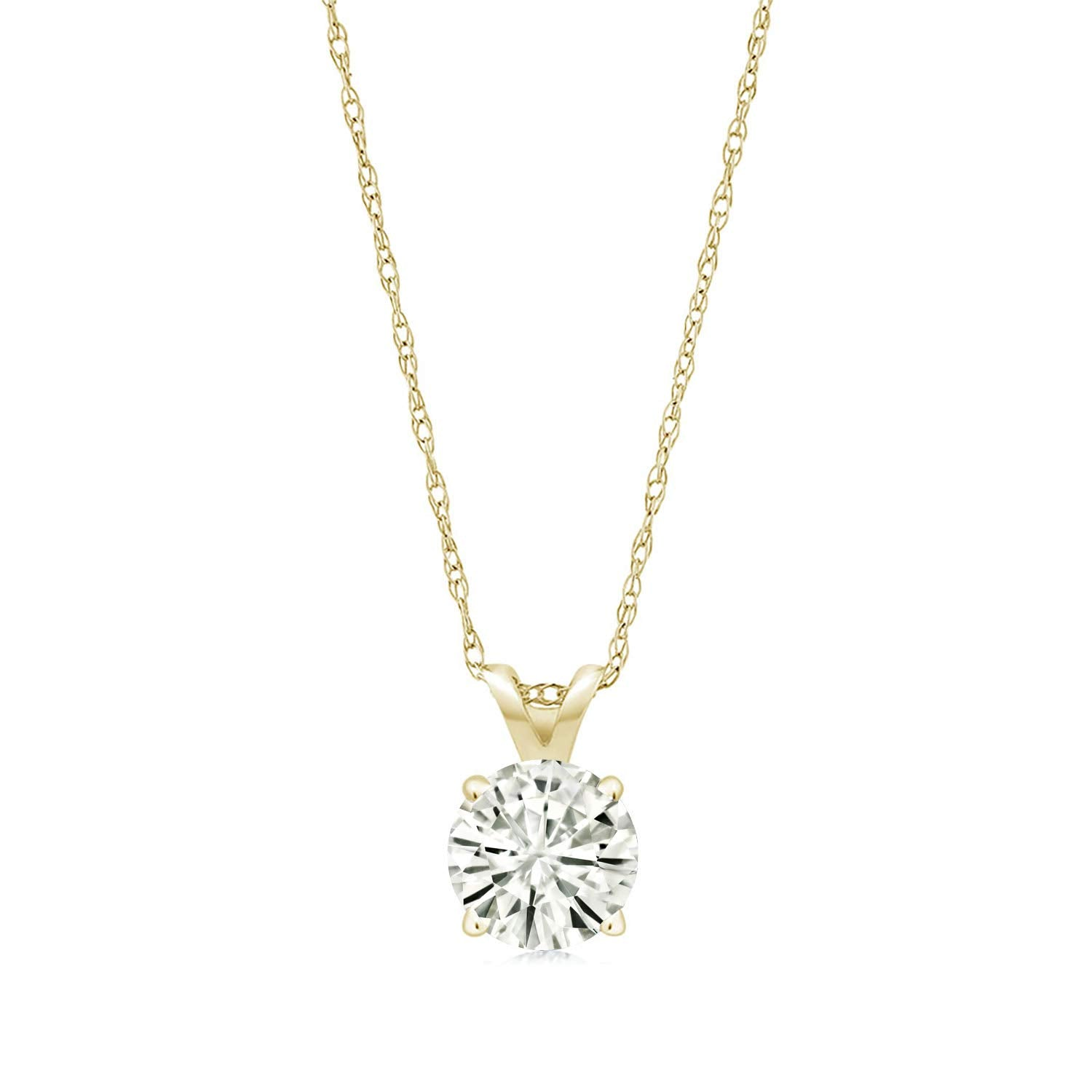 Elevate your style with the enduring brilliance of our 0.80 CTW Certified Genuine Moissanite Solitaire Pendant Necklace. This stunning piece features a 6mm, near-colorless (GH) moissanite solitaire set in a timeless 4-prong 14K gold setting. Available in your choice of 14k white or yellow gold, the pendant comes complete with an 18" sterling silver chain, making it a versatile addition to any jewelry collection.