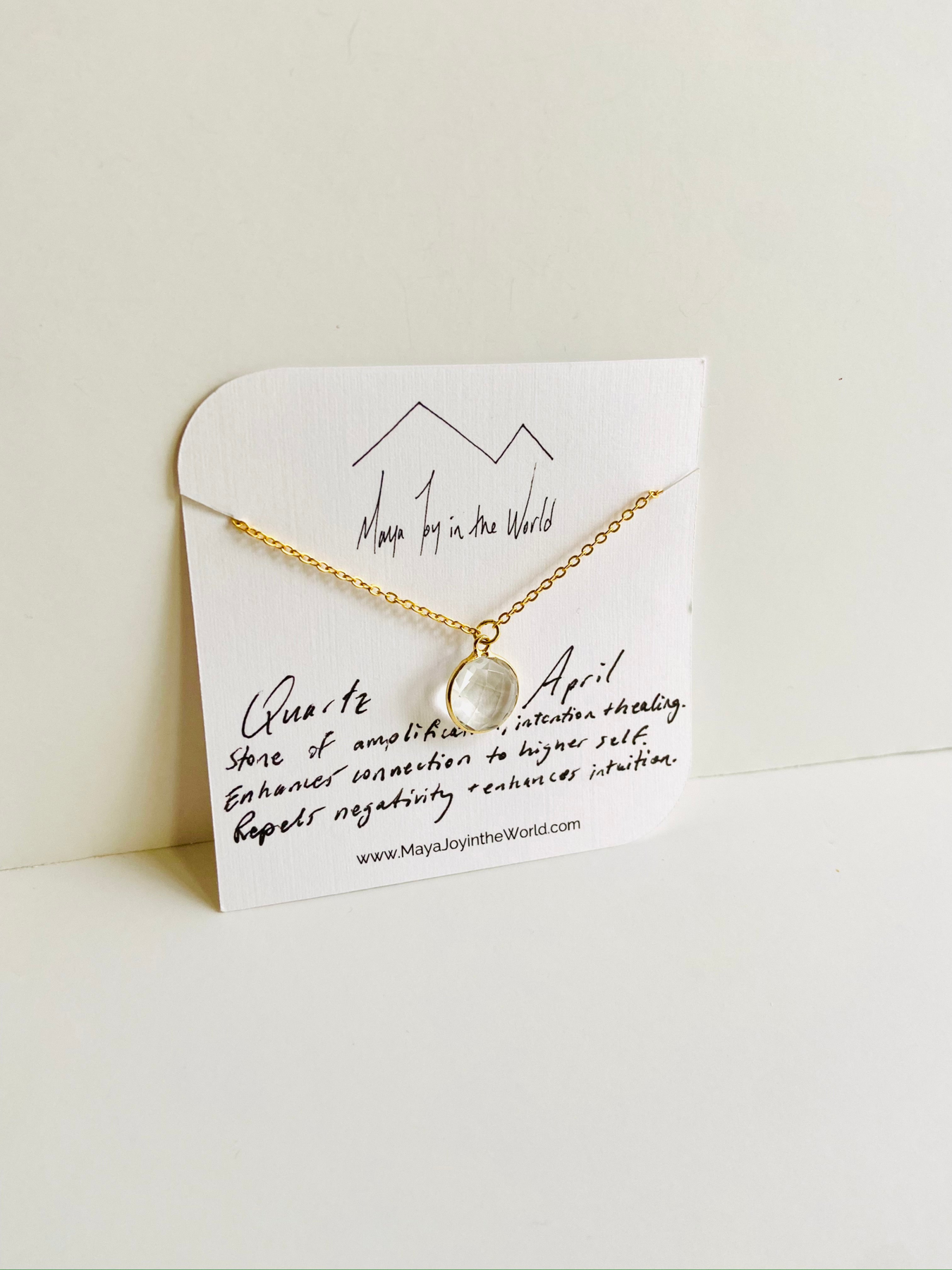 Our stunning April Birthstone Necklace features a radiant quartz pendant, symbolizing purity and clarity. This exquisite piece makes an ideal gift for those born in April or anyone who appreciates timeless beauty.