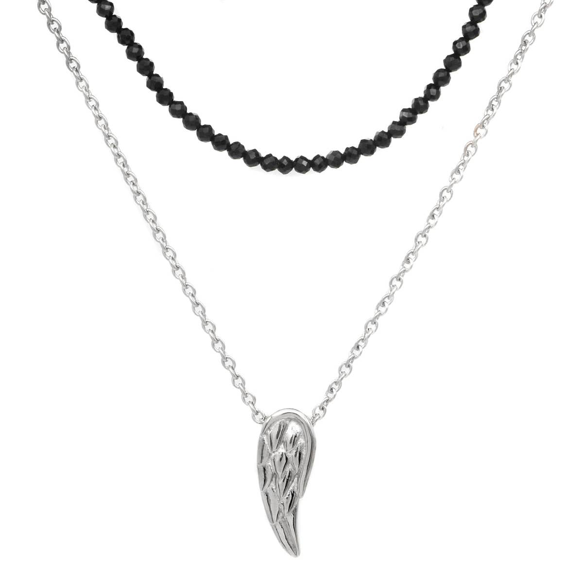 Elevate your style with this stunning necklace. Click 'Add to Cart' now and experience the elegance and grace of the Angel Wing Chain & Beaded Double necklace for yourself.