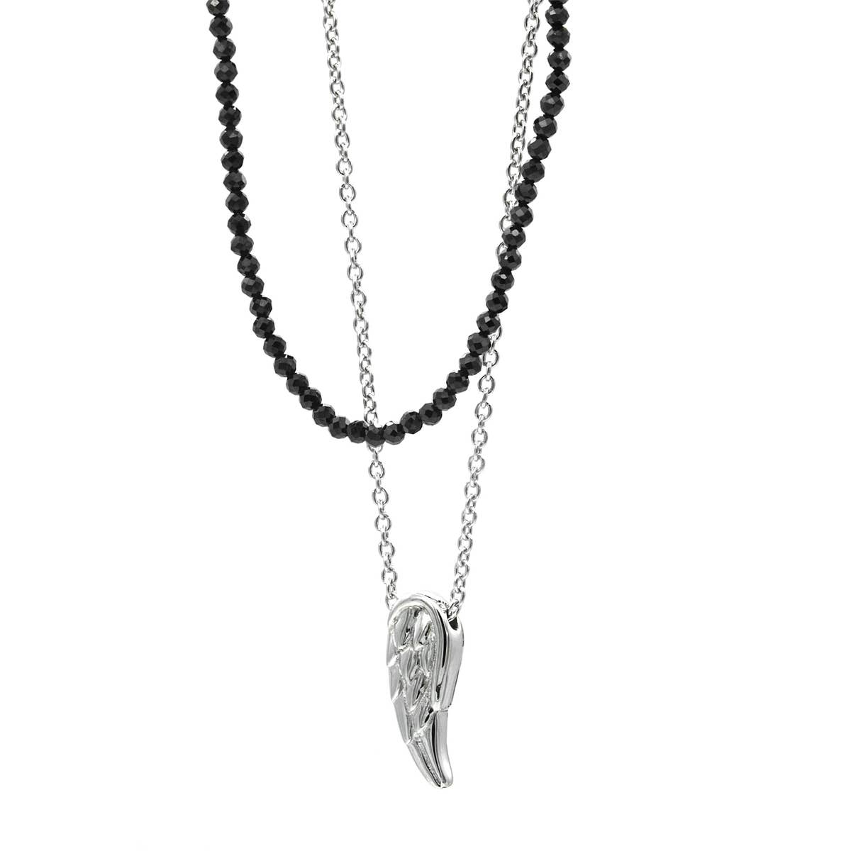 Elegant Black Spinel Beaded Steel Wing Double Chain Necklace