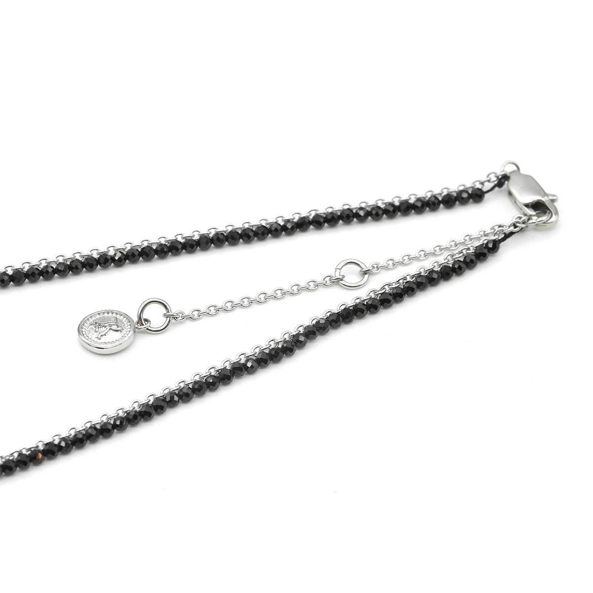 Whether you're dressing up for a special occasion or adding a touch of elegance to your everyday attire, this necklace is the perfect choice. Its sleek design and black Spinel beads effortlessly complement any outfit, making it a versatile accessory for any occasion.