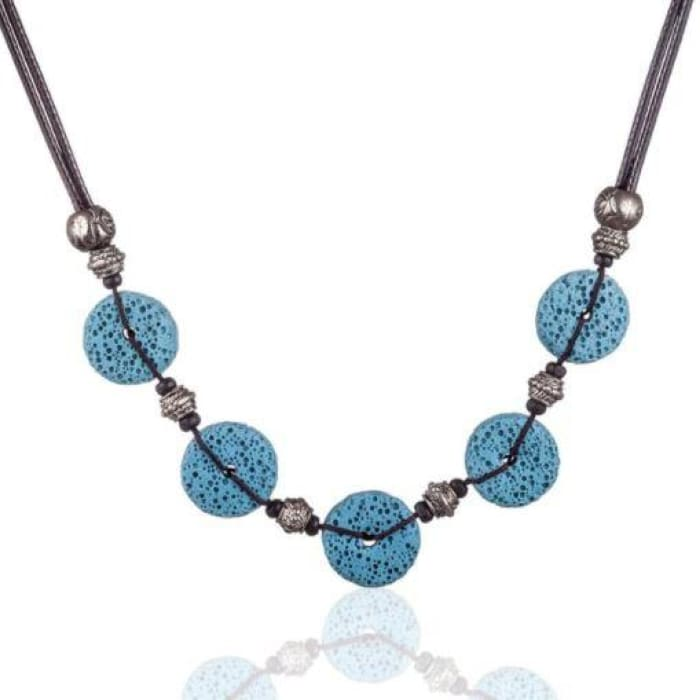 Enjoy the dual benefits of fashion and wellness with this versatile accessory. Whether you're at work, at home, or on the go, the Blue 5 Bead Lava Stone Essential Oils Necklace is the perfect companion.