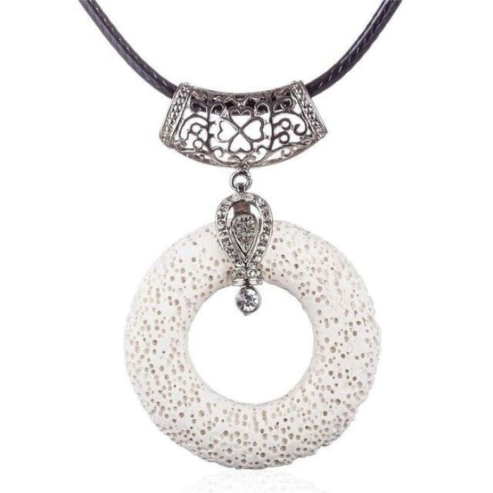 Enhance Your Style and Well-being with the Bright White Circular Lava Stone Pendant Essential Oils Necklace