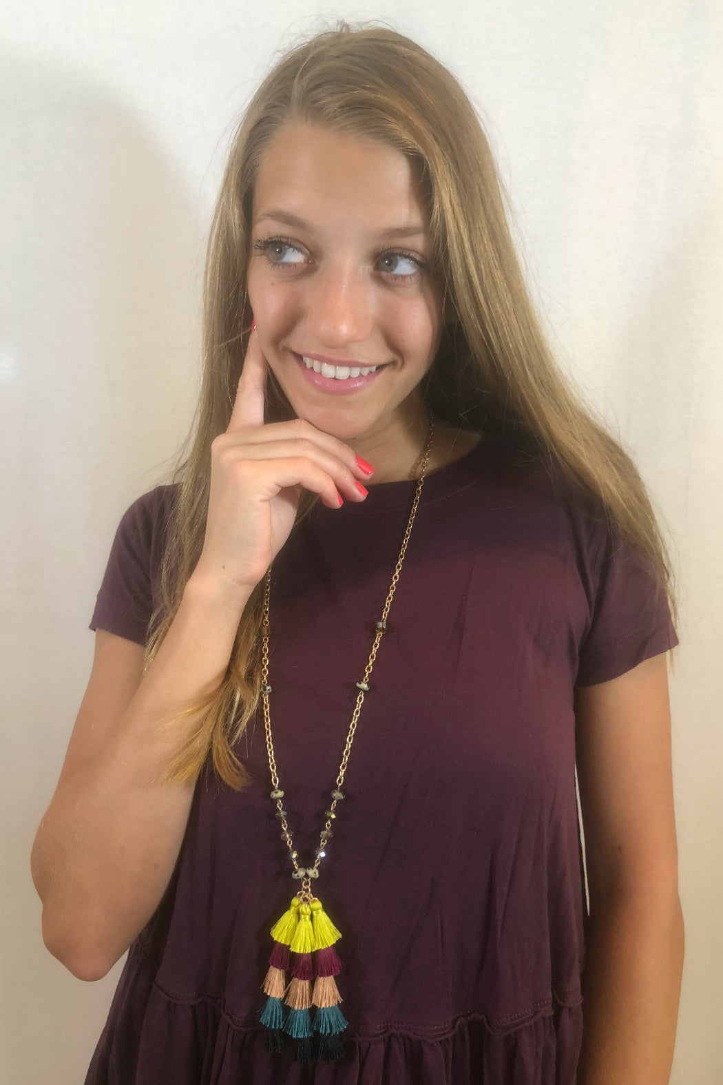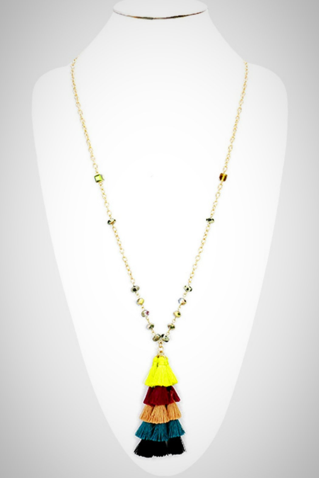 Add a splash of color to your outfit with our Vibrant Colors Tassel Necklace!