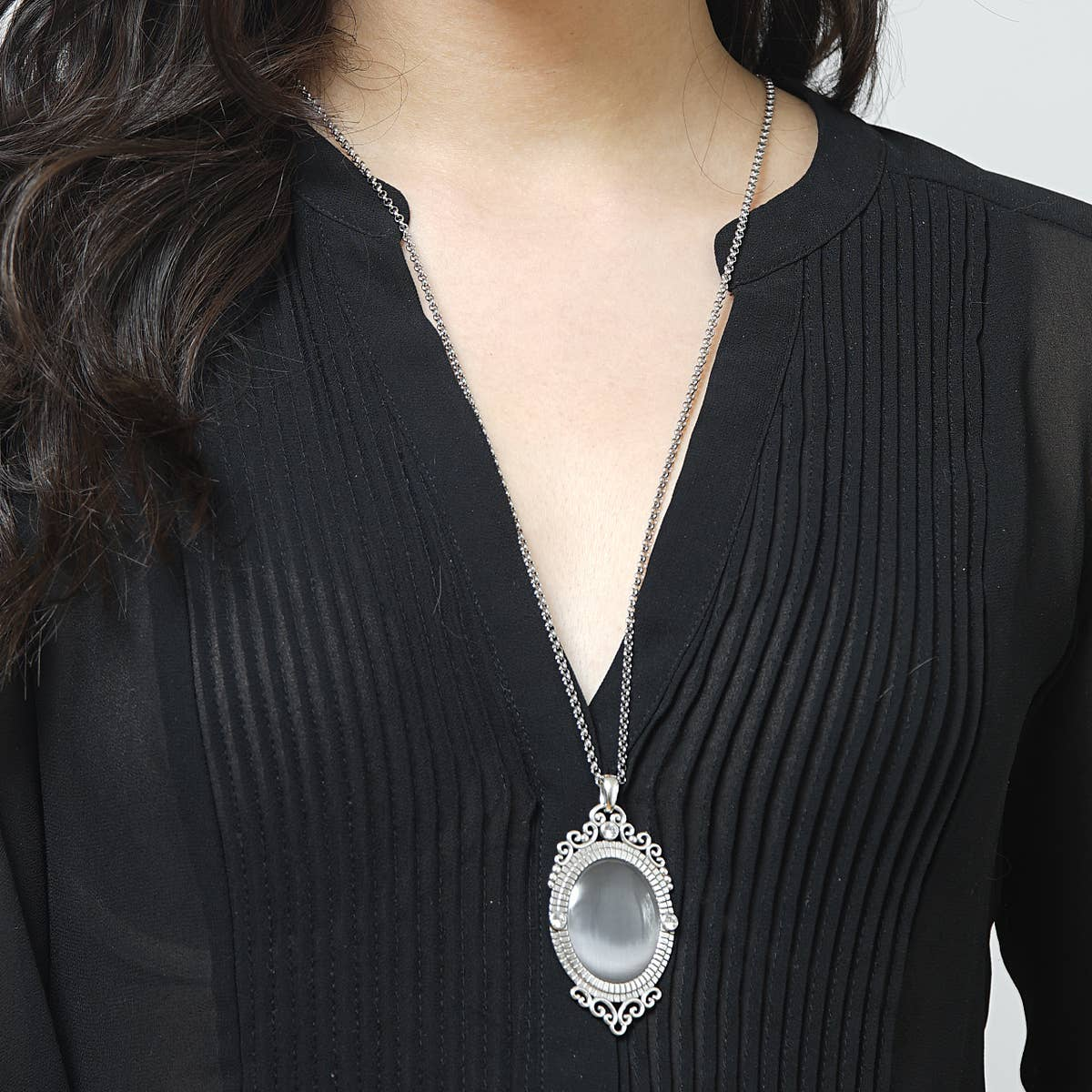 - Adjustable chain allows for versatile styling