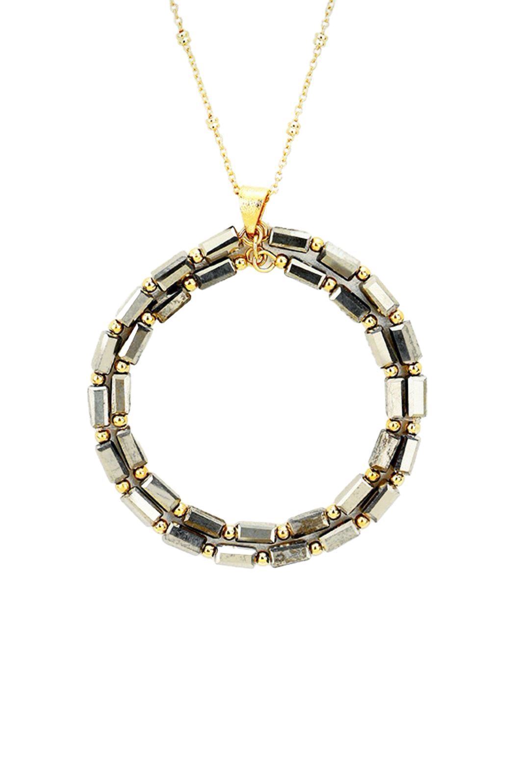Discover the allure of our Eternity Pendant Necklace, a stunning combination of gold and sparkling beads. This exquisite piece is designed to make a statement while remaining lightweight and comfortable for all-day wear.