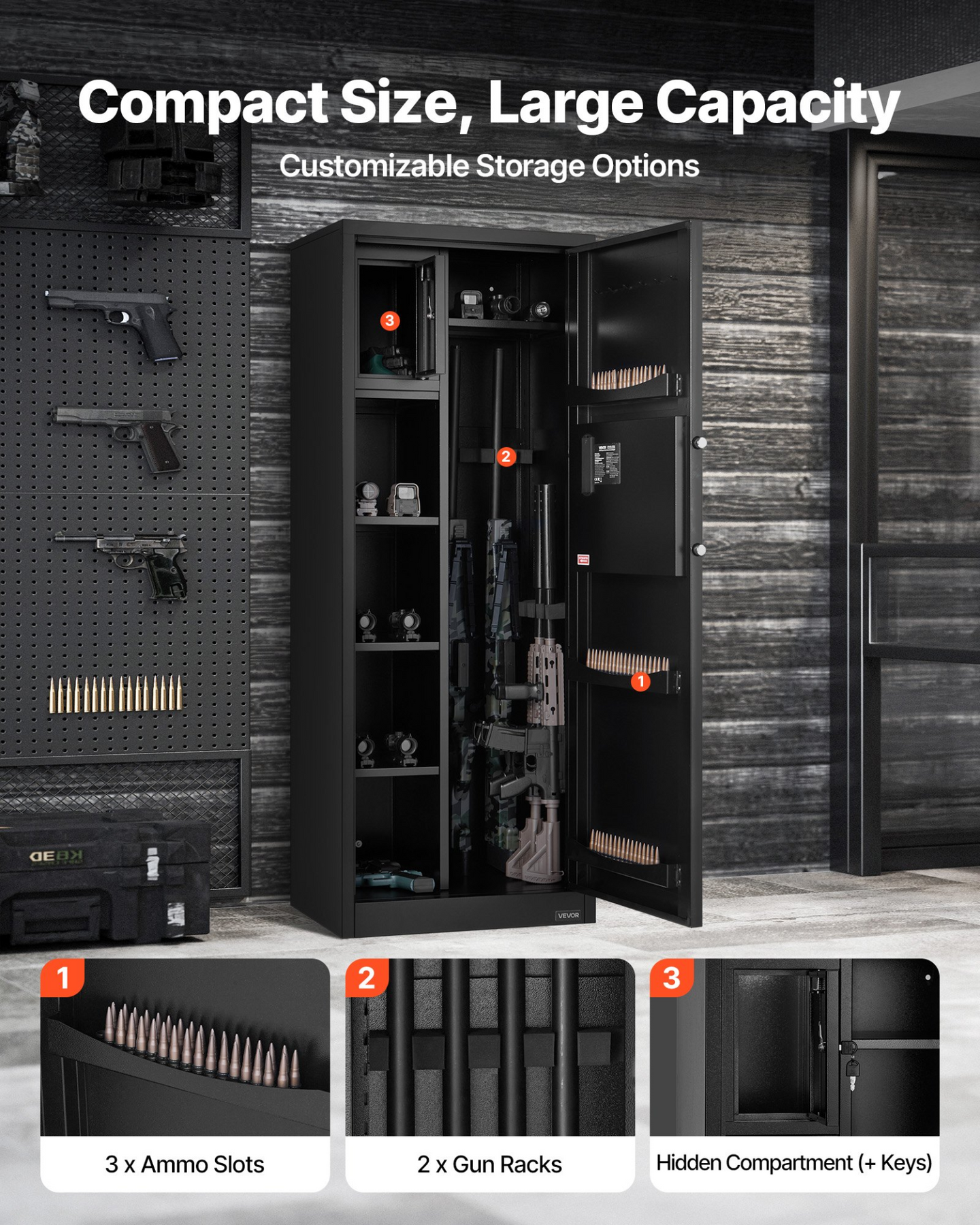 The VEVOR Gun Safe is the ultimate solution for securing your firearms. Designed with robust security features and ample storage space, this gun cabinet offers peace of mind and quick access when needed.