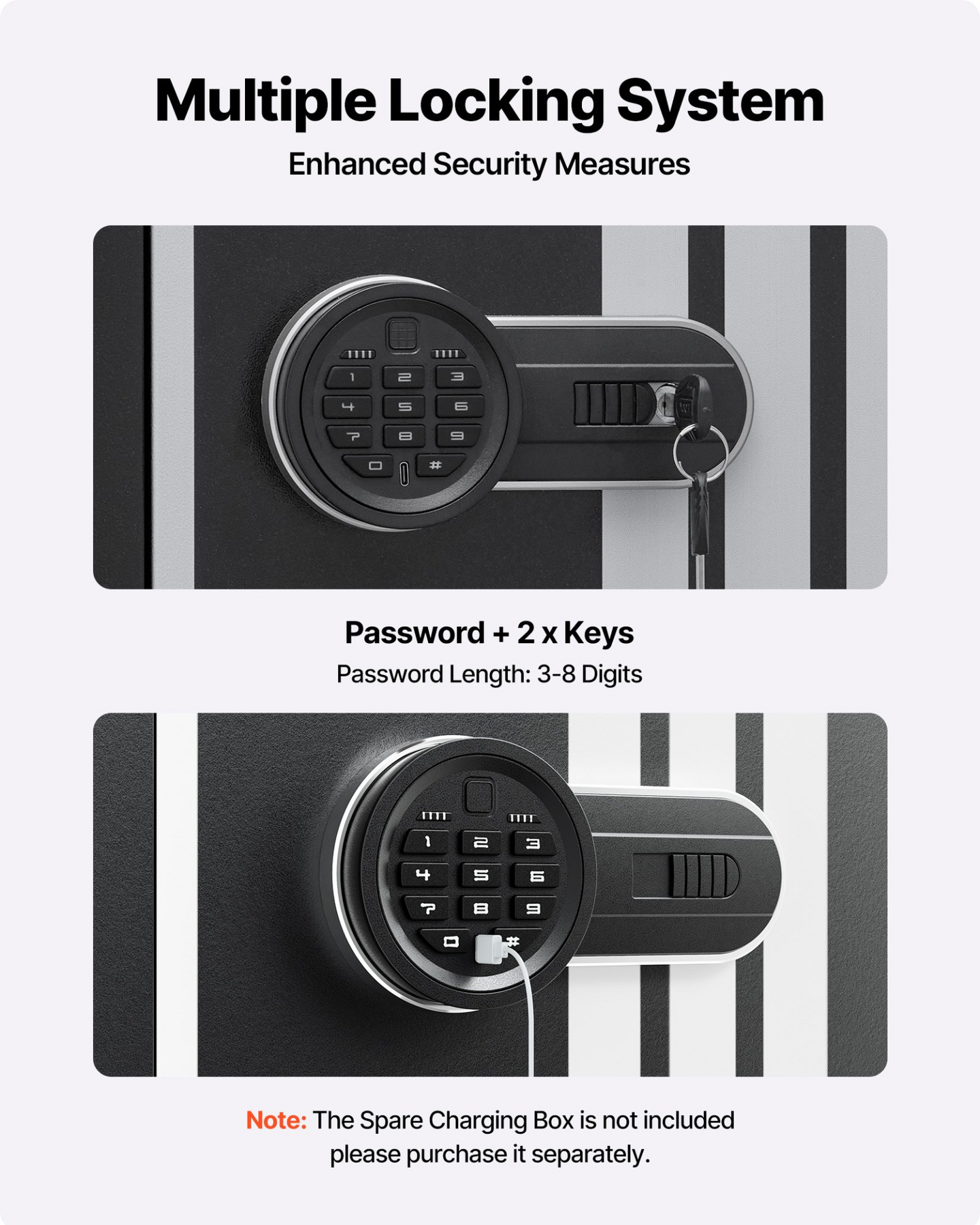 Smart Lock System: Equipped with both key and password lock mechanisms for dual-layer security.