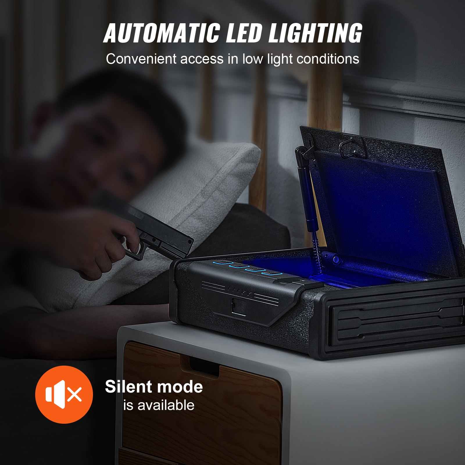 Protect your handguns with the VEVOR Gun Safe for Pistols. This biometric gun safe offers three quick access ways - fingerprints, passwords, and keys - ensuring that you can securely retrieve your firearms when needed. Whether you need a safe for your home, bedside, nightstand, or car, this gun safe is perfect for you. With its triple locking mechanism, the VEVOR Gun Safe provides superior protection, giving you peace of mind knowing that your firearms are safely stored. The enhanced visibility and convenience make it easy to access your firearms in any situation. The secure installation ensures that the gun safe stays securely in place, providing an added layer of security. Despite its compact size, this gun safe offers ample space to store two pistols and a magazine. It is made of premium hard steel, ensuring durability and long-lasting performance. Invest in the VEVOR Gun Safe for Pistols and keep your firearms secure and accessible whenever you need them. Specifications: - Length: 39.0 in, Width: 32.0 in, Height: 16.0 in