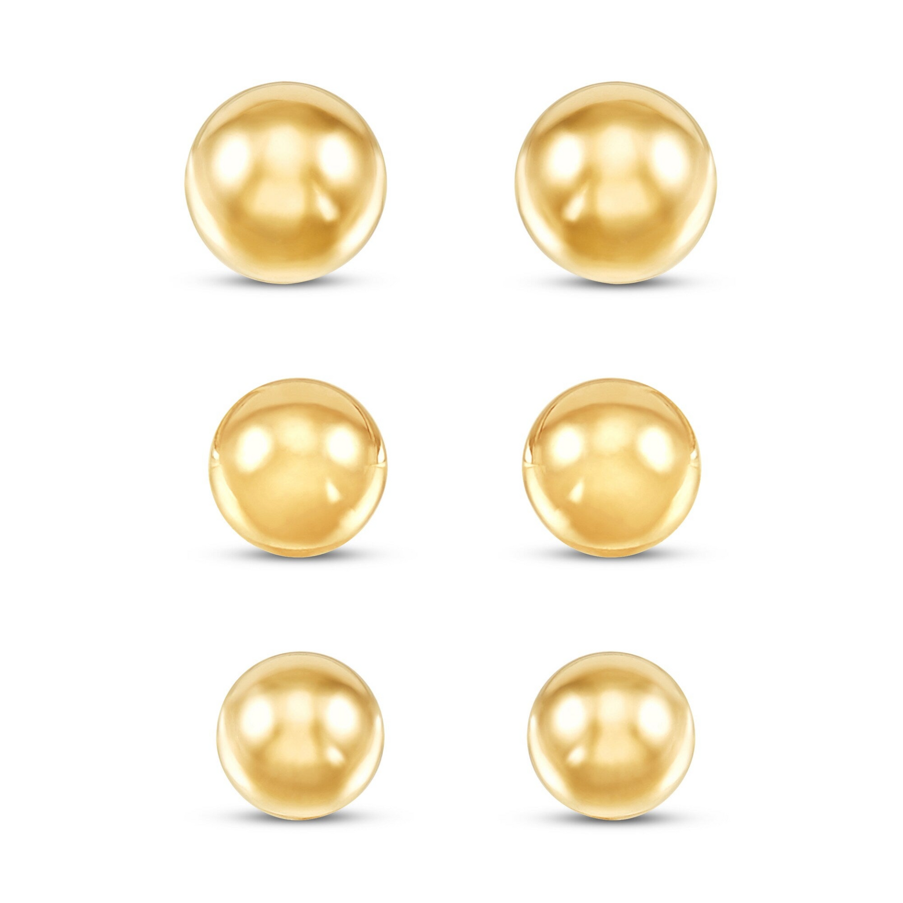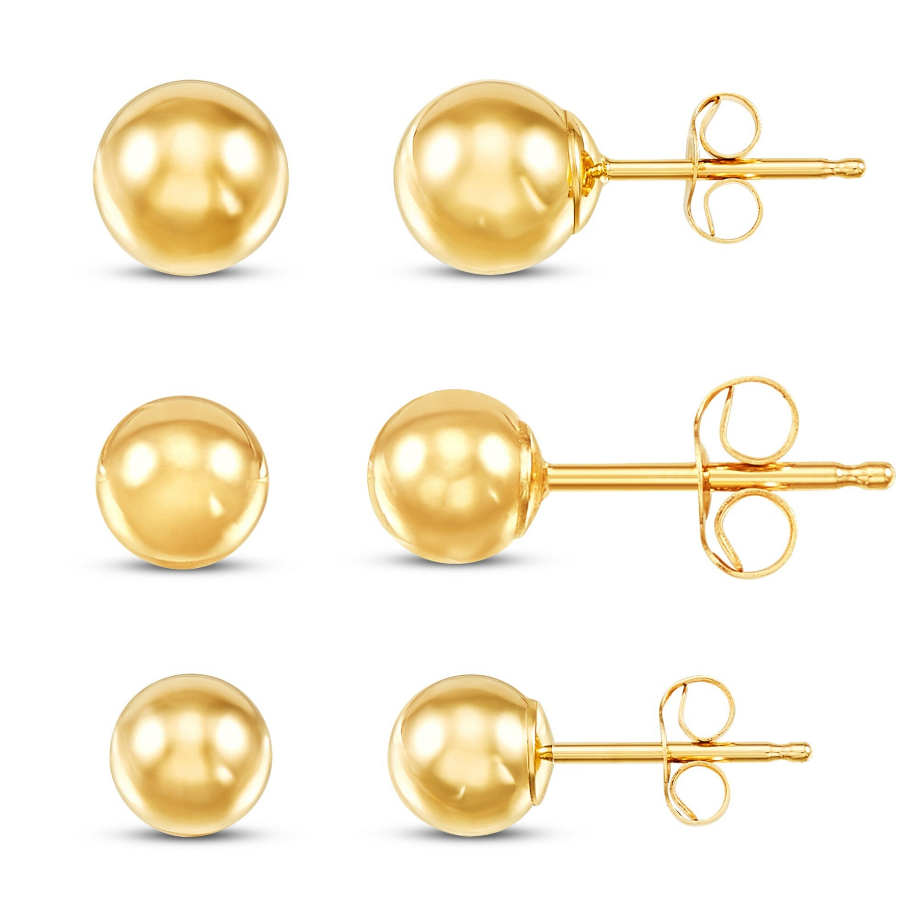 Enhance your jewelry collection with the 14K Yellow Gold Ball Stud Earrings Set, featuring three versatile sizes—4mm, 5mm, and 6mm. These timeless earrings are meticulously crafted from polished 14K yellow gold, offering a radiant shine that's perfect for any occasion. Designed with comfortable, secure friction backs, they guarantee a snug fit all day long.