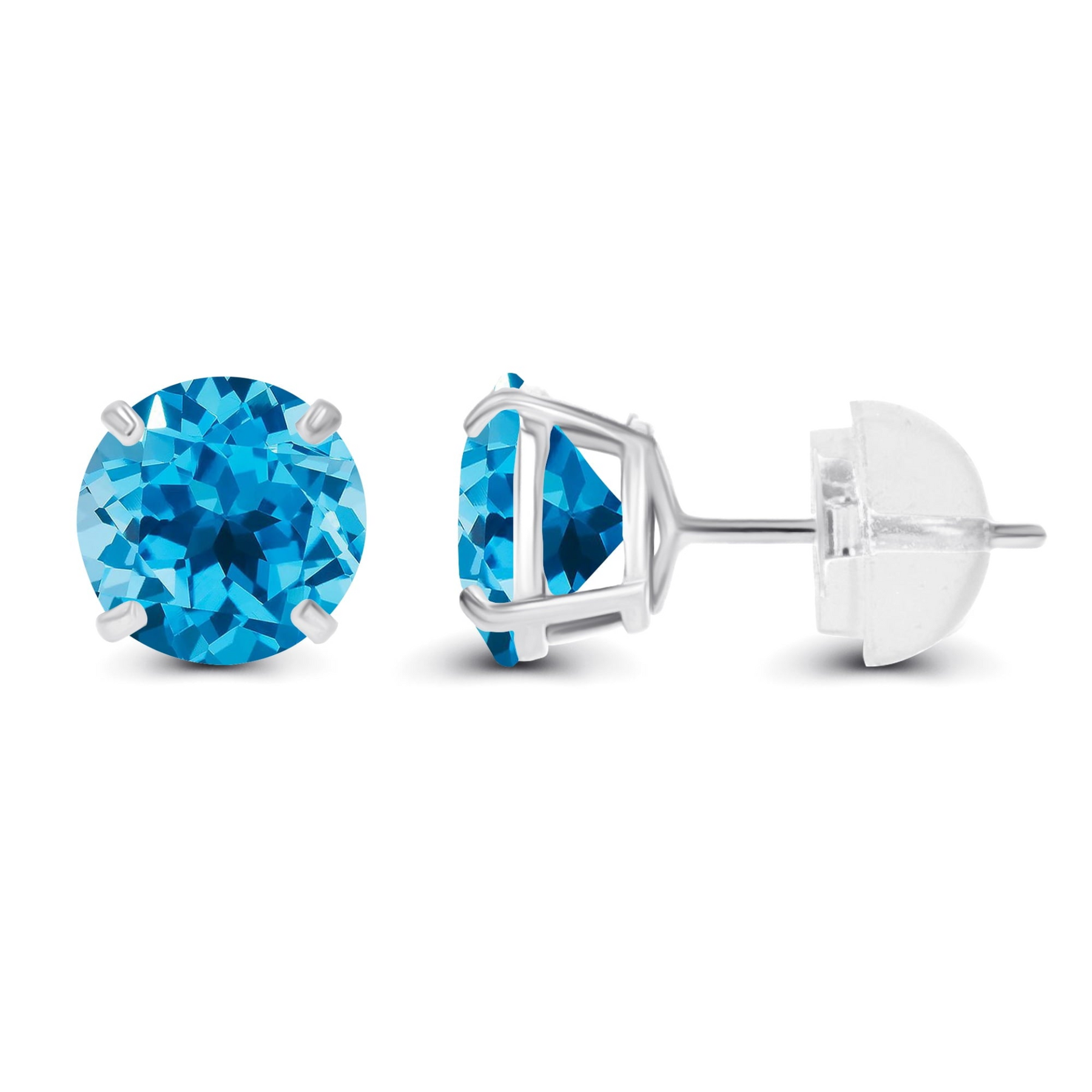 Grace your jewelry collection with these exquisite genuine 14K White Gold stud earrings, featuring natural Swiss Blue Topaz gemstones. Each 6mm round-cut stone, totaling 2.00 carats, radiates a vibrant blue hue and is securely set in a four-prong design. Handcrafted in the USA with pure 14K White Gold, these earrings showcase exceptional craftsmanship and timeless elegance. With a comfortable push-back closure, they are perfect for both everyday wear and special occasions. Presented in a premium gift box and backed by a 30-day money-back guarantee, these earrings make an elegant and thoughtful gift for any occasion.