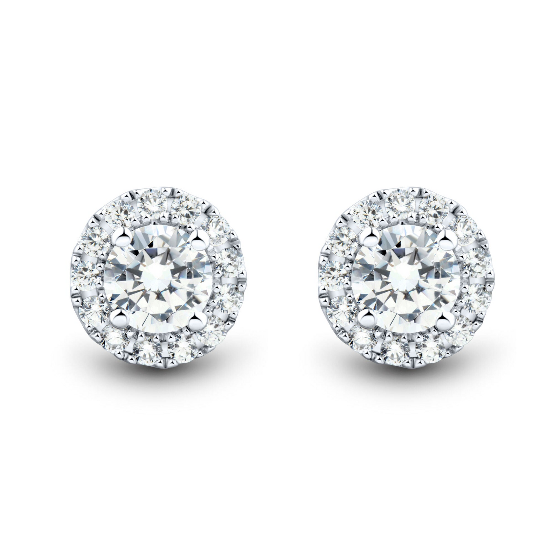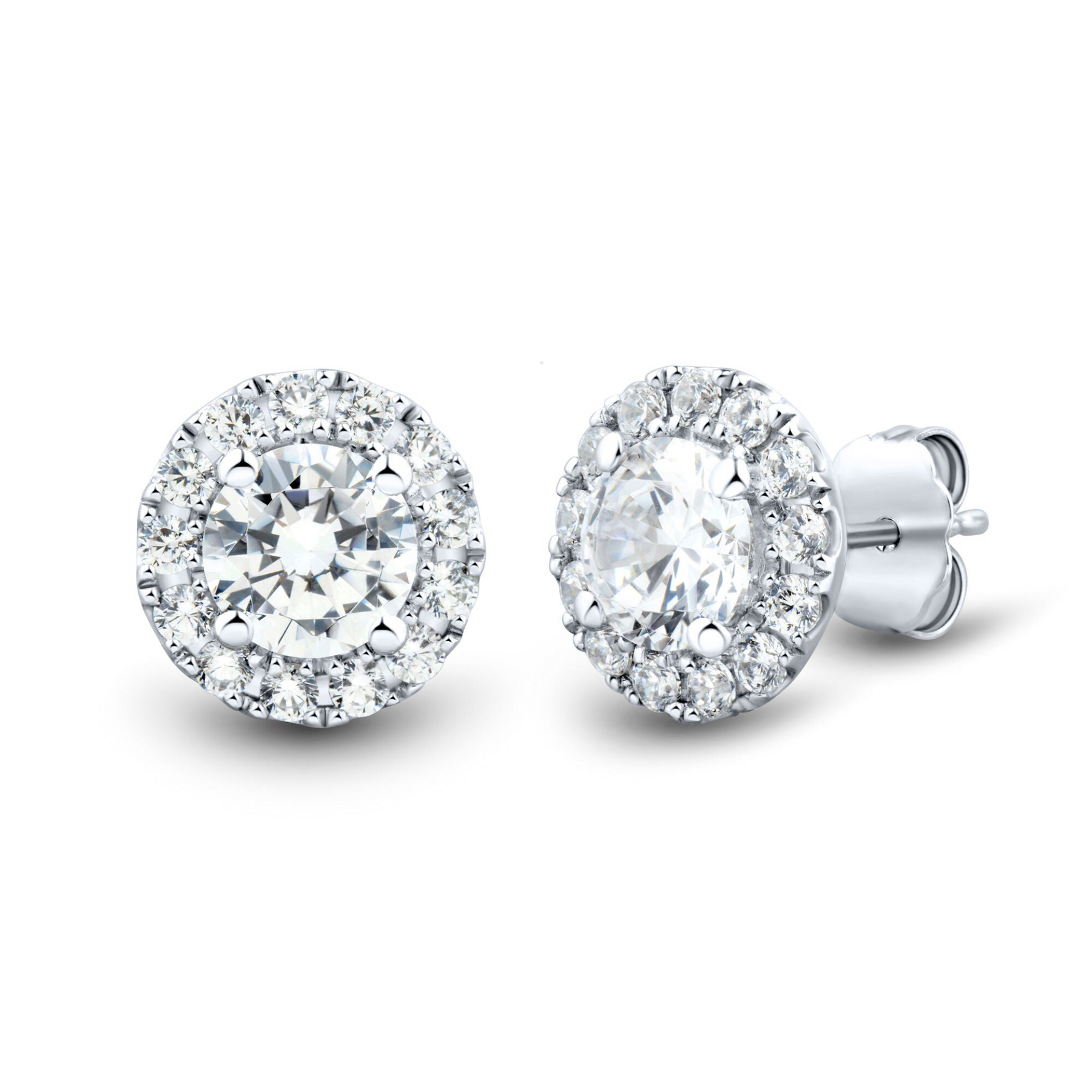 Designed for the discerning jewelry lover, these exquisite 2 CTW AGI-Certified Lab Grown Diamond Halo Earrings in 14K White Gold embody timeless elegance and eco-friendly luxury. Each earring features a round brilliant lab-grown center diamond (1.5 CTW total) encircled by 26 sparkling accent stones (0.5 CTW), offering a total of 2 carats of radiant brilliance. Embrace sophistication with F-G color, VS clarity, and AGI certification, ensuring exceptional quality and ethical sourcing. Perfect for any occasion, these earrings blend style and sustainability effortlessly.