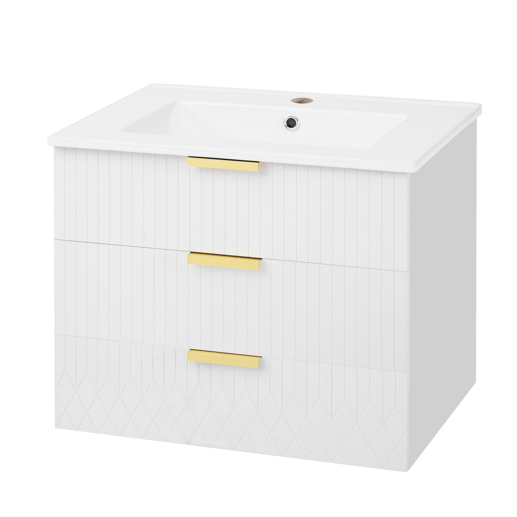 24-inch Wall Mounted Floating Bathroom Vanity with Side Cabinet Combo - Modern Ceramic Basin Sink, Single Faucet Hole & Overflow