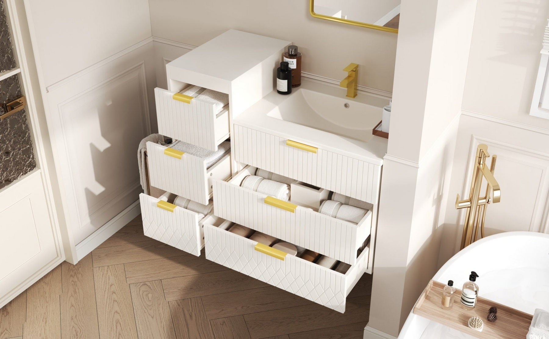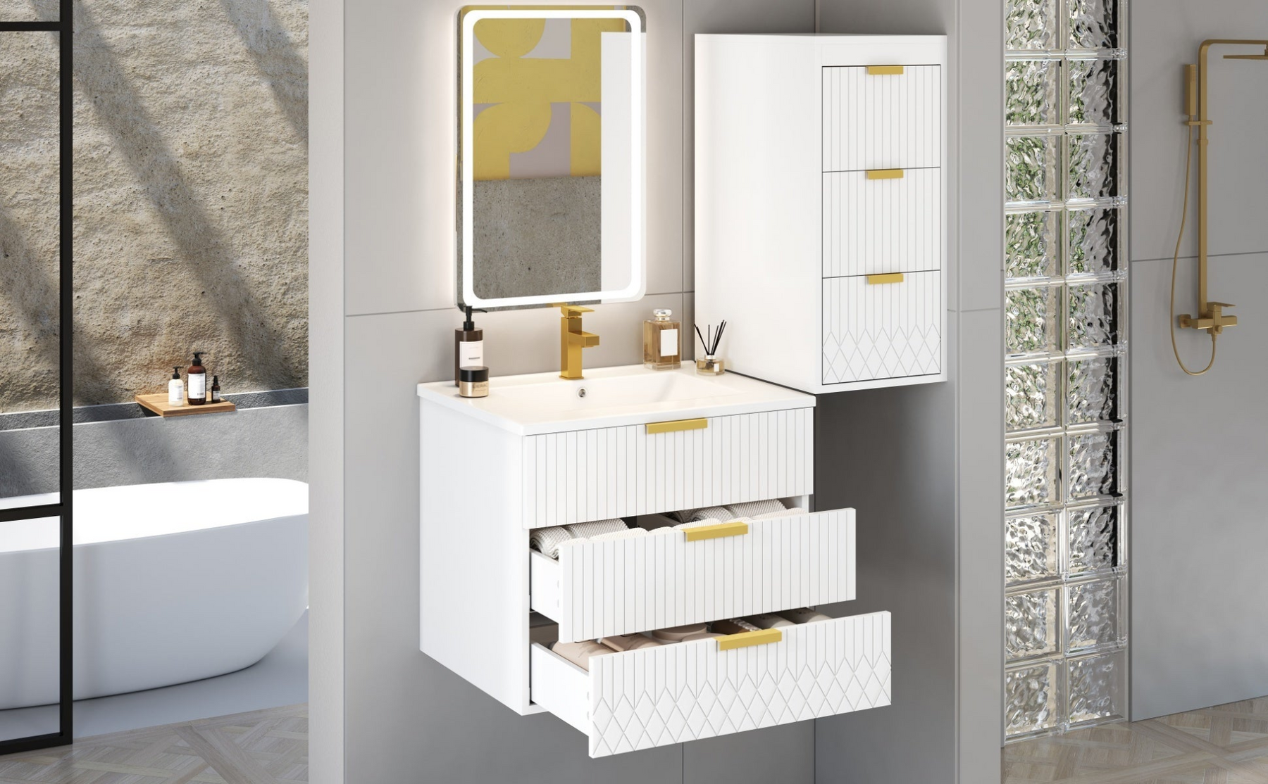 Experience the perfect fusion of premium design and intelligent functionality with the 24-inch Wall Mounted Floating Bathroom Vanity with Side Cabinet Combo. Designed for modern bathrooms, this vanity unit combines aesthetic elegance with practical features.