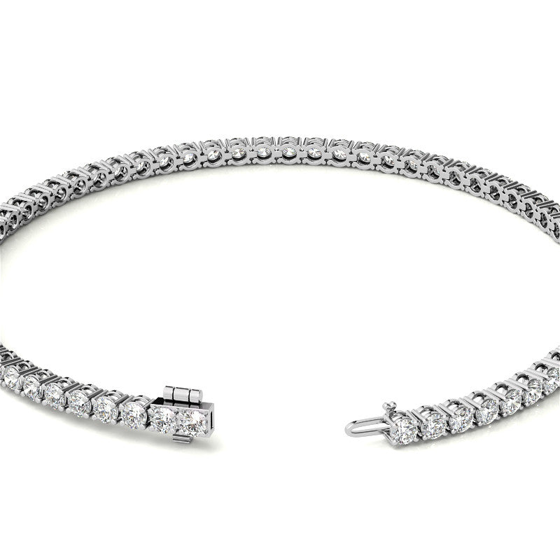 This beautiful tennis bracelet features approx 64 stones of 2.4mm/0.05ct round brilliant G-VS Lab-grown diamonds set in 14k White Gold/Yellow Gold. The total carat weight is 3.5 CTW