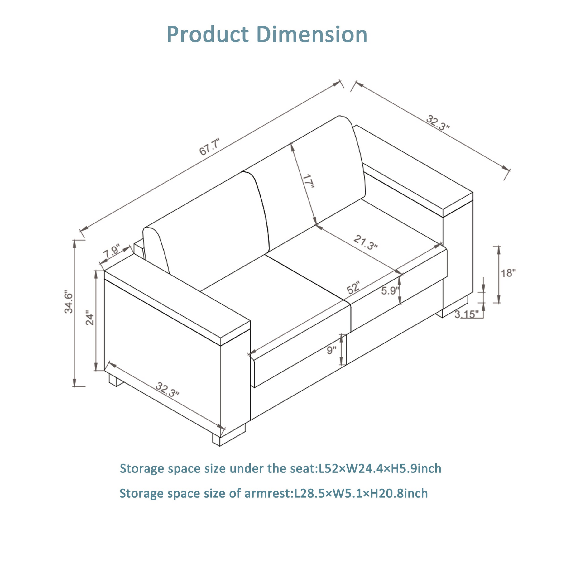 Multi-Function: Wide armrest design with cup holder, additional storage space in the arm for small items such as books and pillows. Large storage space under the seat cushion.