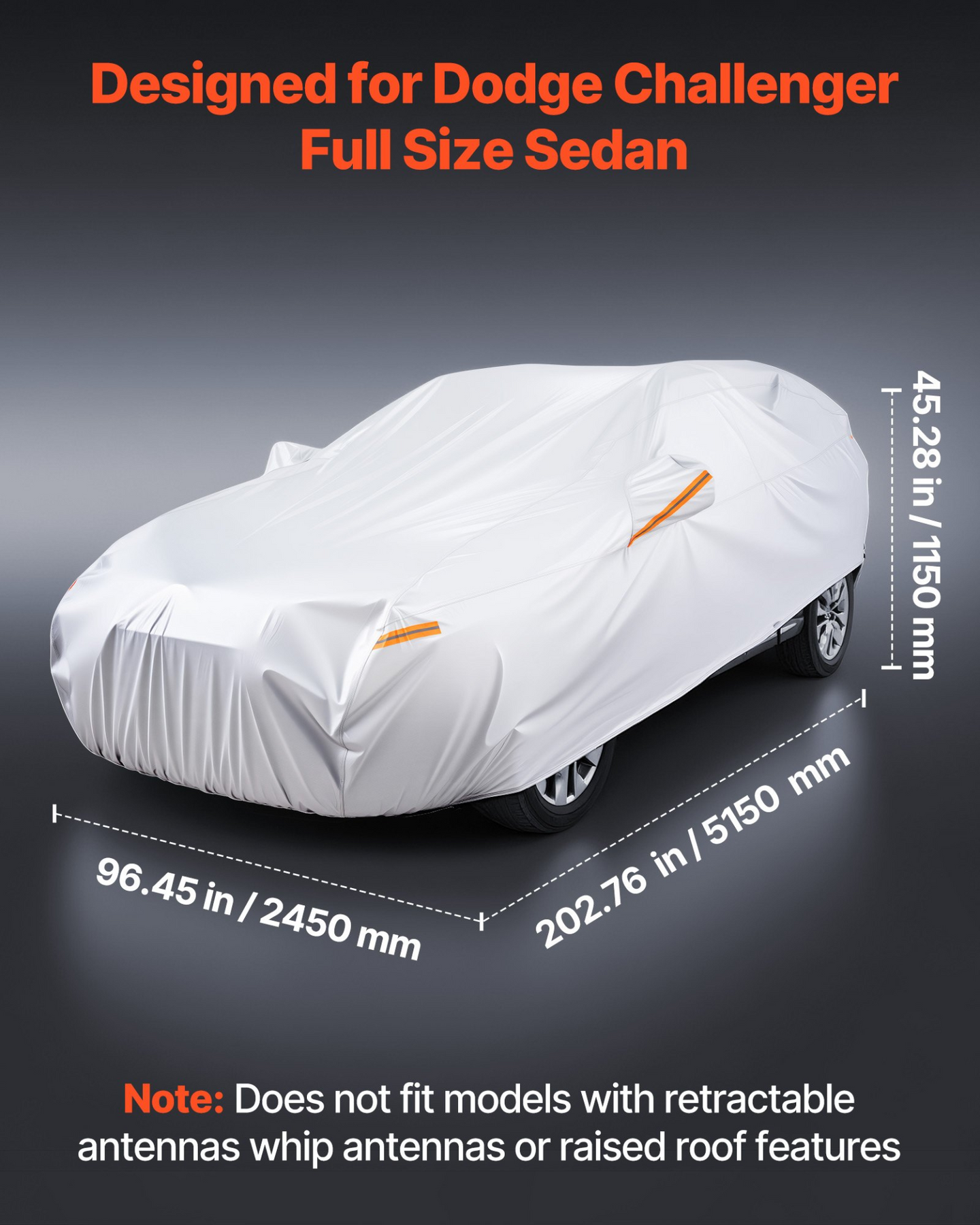 Custom-fit Design: Specifically tailored for full-size Dodge Challenger sedans, ensuring a snug and secure fit.