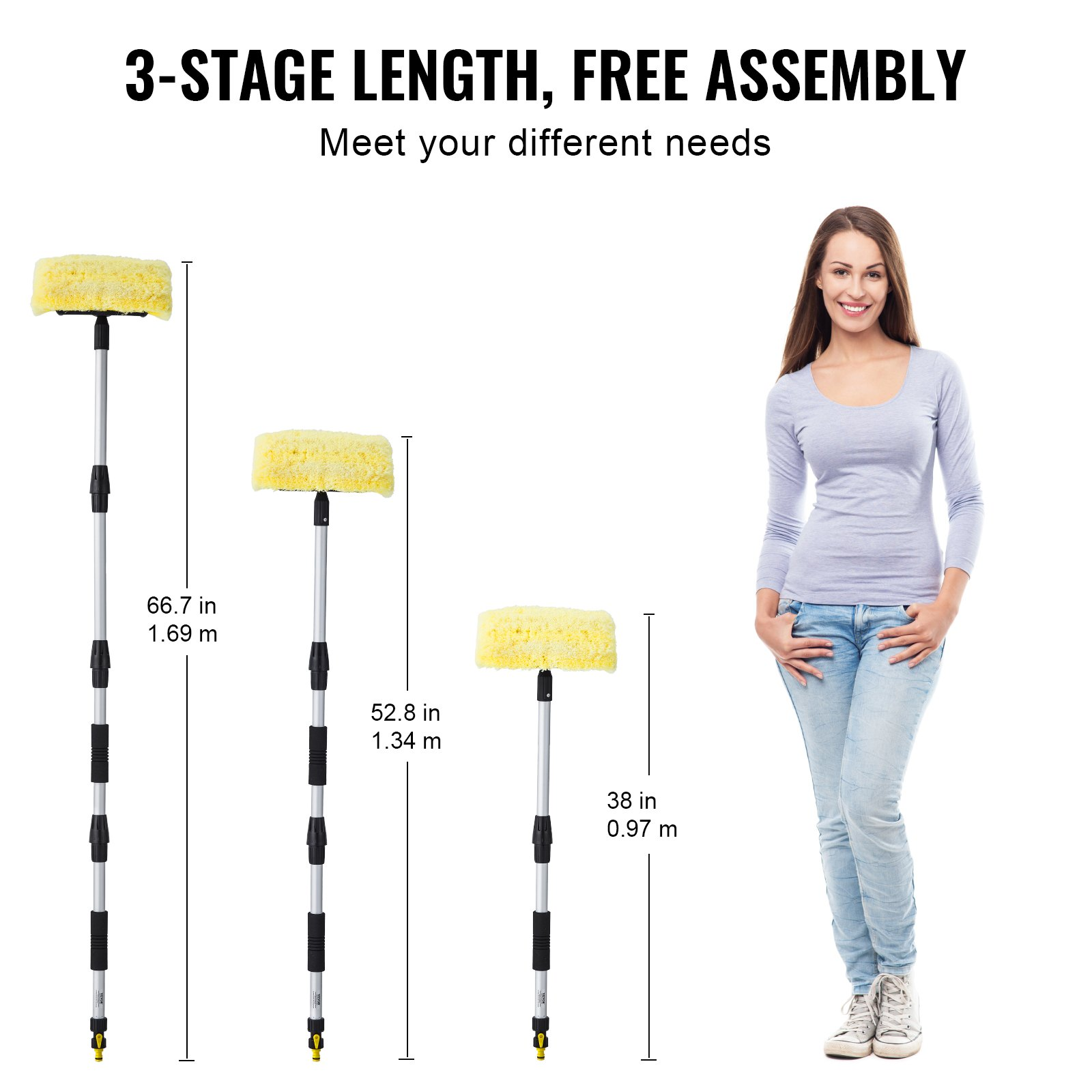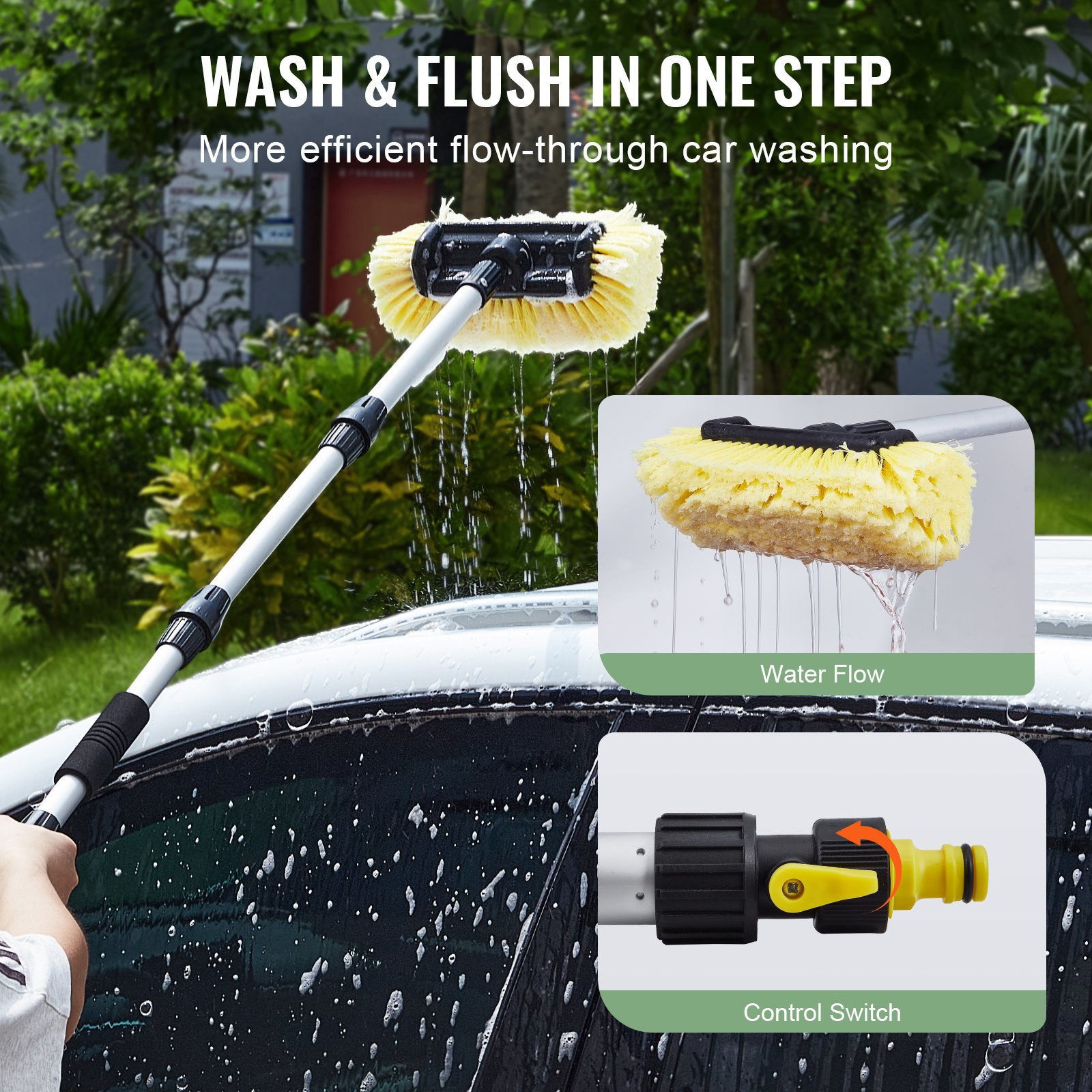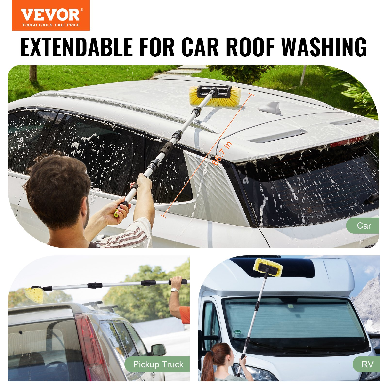 Extended Reach: Featuring a 66.7-inch length, this car wash brush ensures you can easily clean large vehicles such as SUVs, trucks, RVs, and boats without straining.