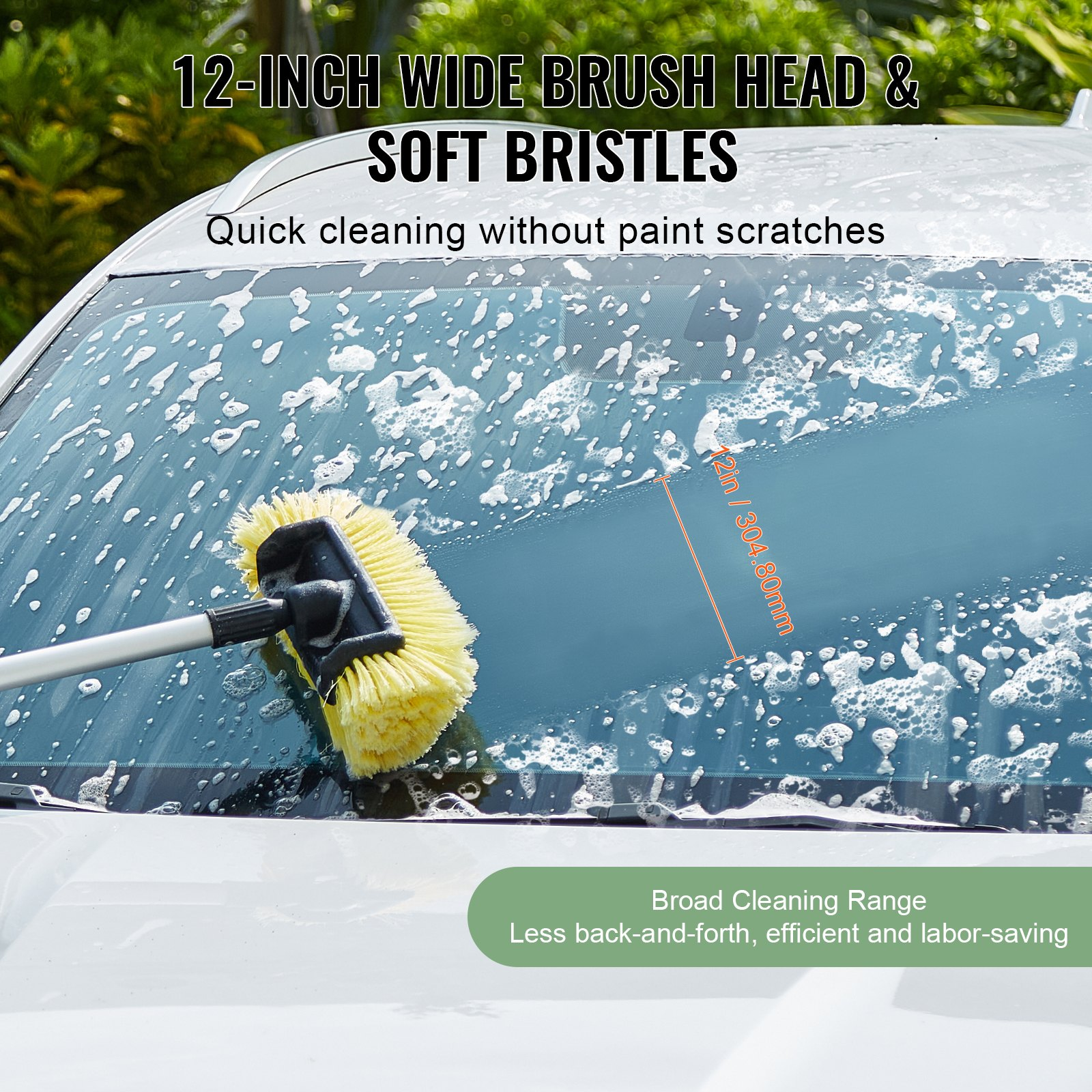 Soft PVC Bristles: The 12-inch bristle head is made of soft PVC material, providing gentle yet effective cleaning without scratching your vehicle's surface.