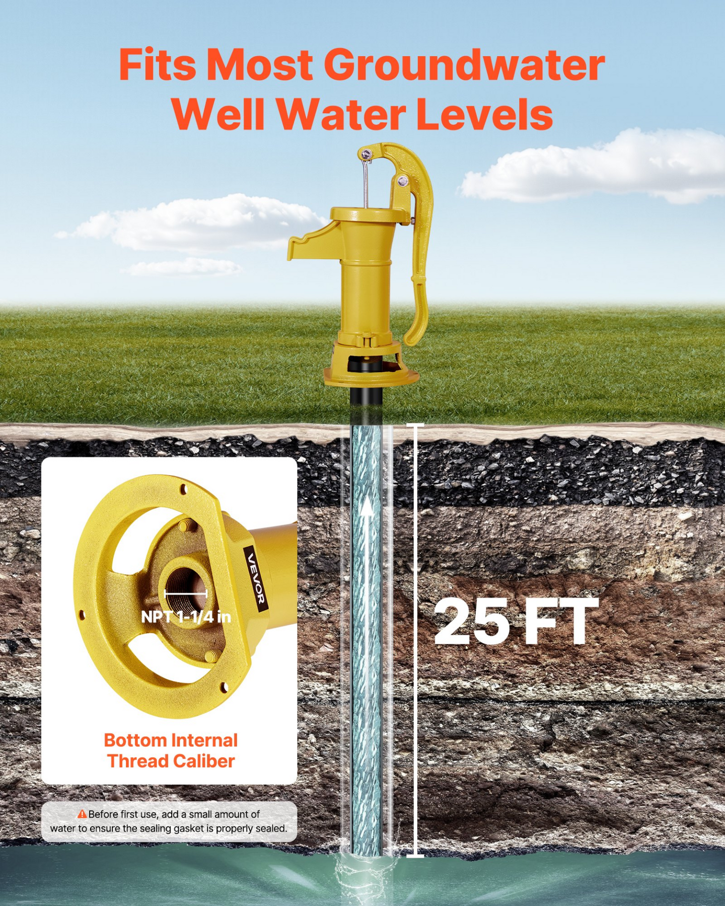 • Maximum Lift: 25 ft (7.6 m) - Effortlessly draws water from deep wells.