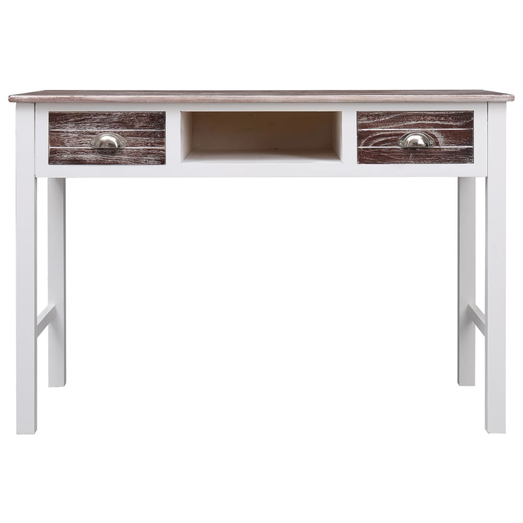 vidaXL Vintage-Style Writing Desk in Brown and White | Solid Paulownia and Poplar Wood