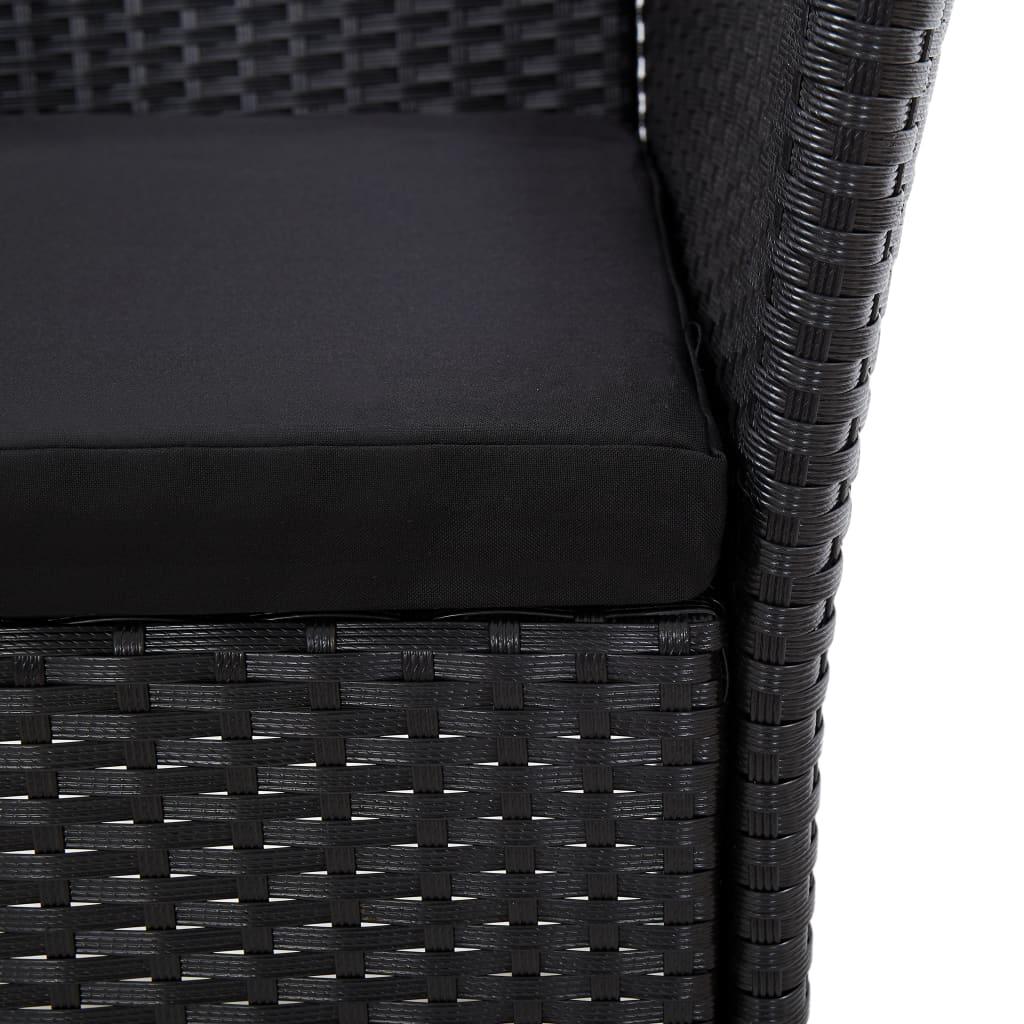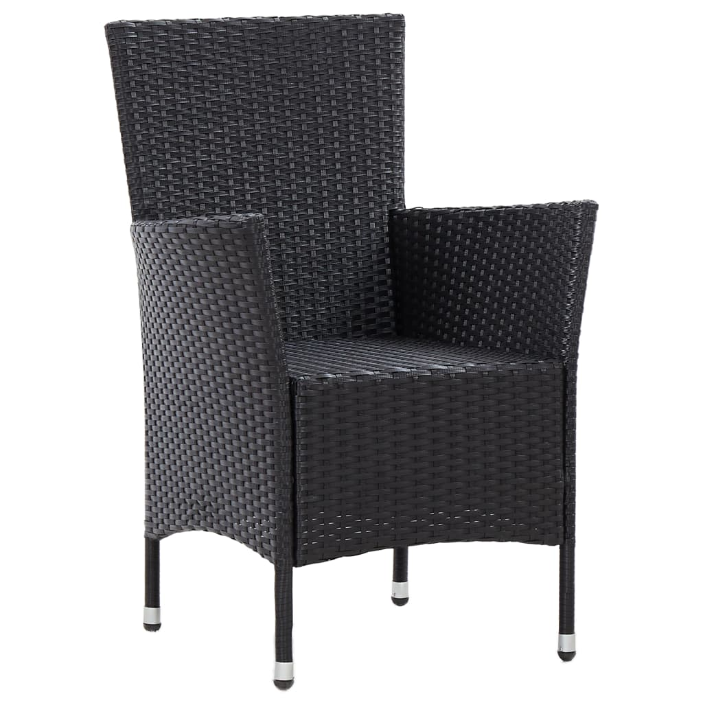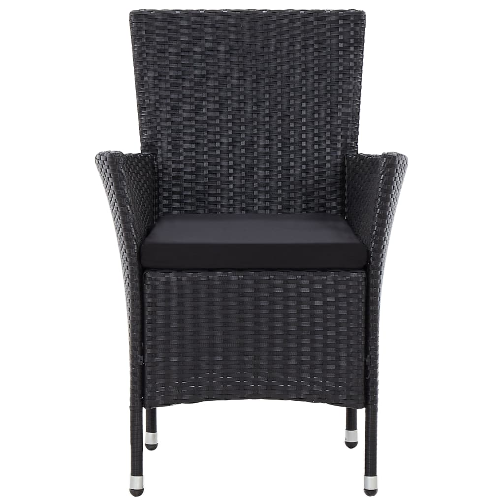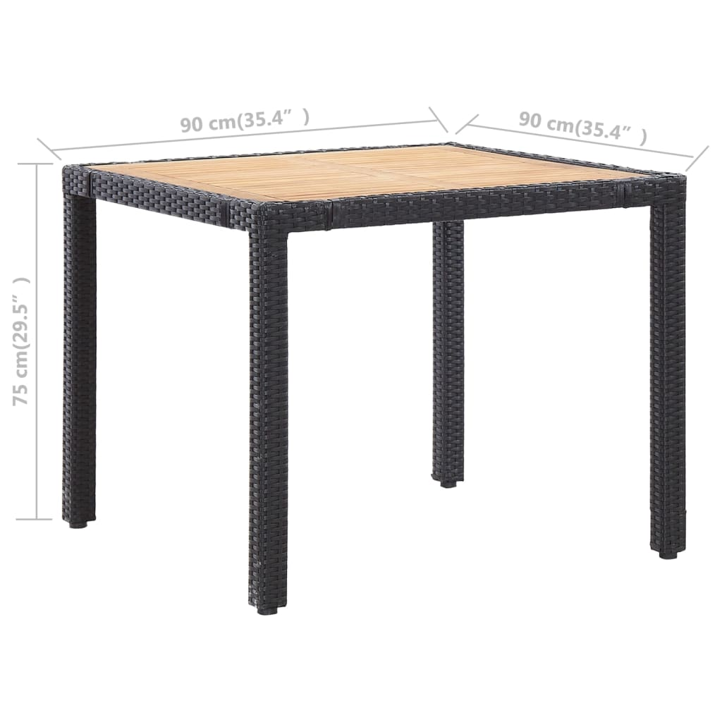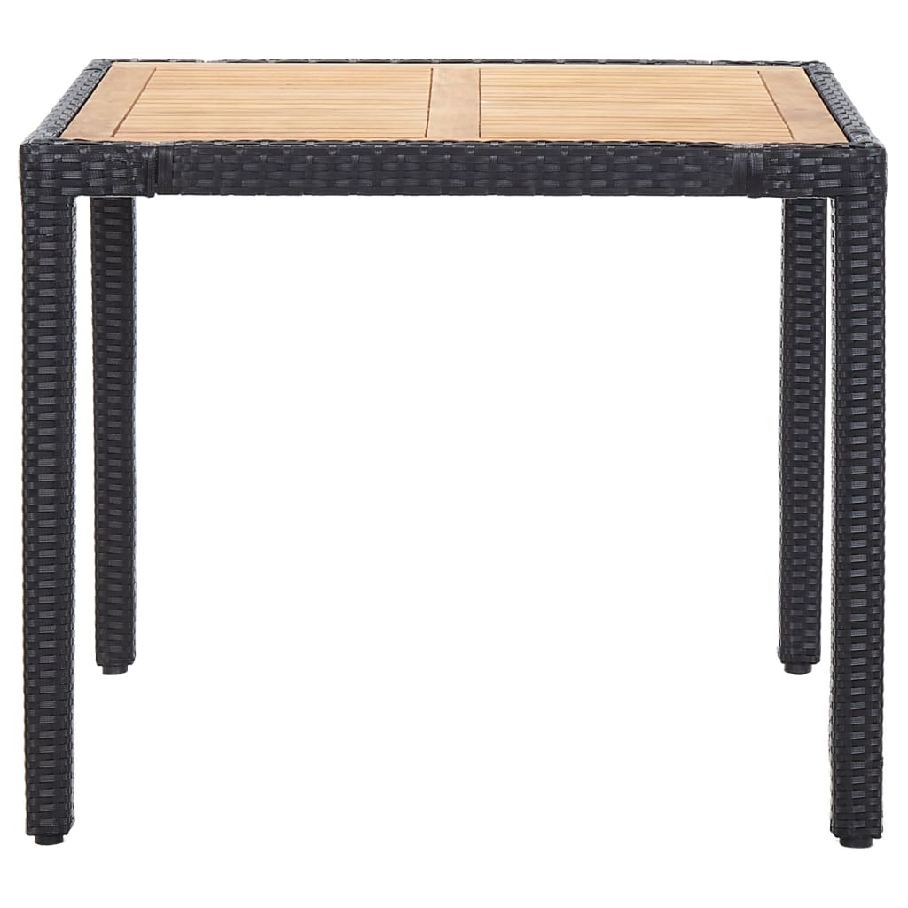 This outdoor dining set is the perfect combination of style and practicality for your garden or balcony. With a modern look and sleek lines, it features a square table and four comfy chairs, just right for enjoying meals with family or friends in the sun. The elegant mix of black poly rattan and natural acacia wood creates a welcoming vibe, making it a fantastic addition to any outdoor living area.