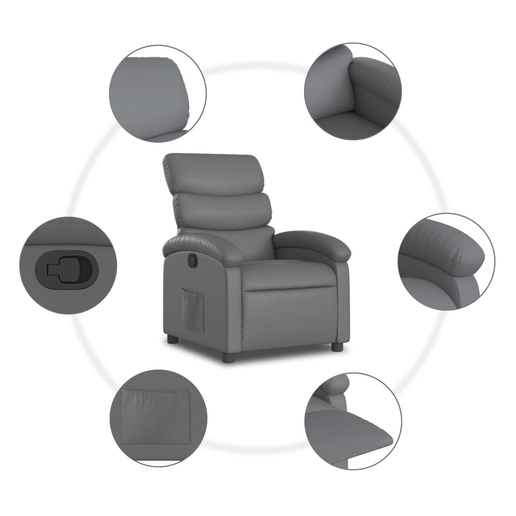 This recliner is all about modern comfort with its stylish gray faux leather that perfectly blends fun and practicality. Whether it’s for your living room or home theater, its sleek shape and laid-back vibe make it a great spot for reading, binge-watching, or just kicking back, blending well with any style.