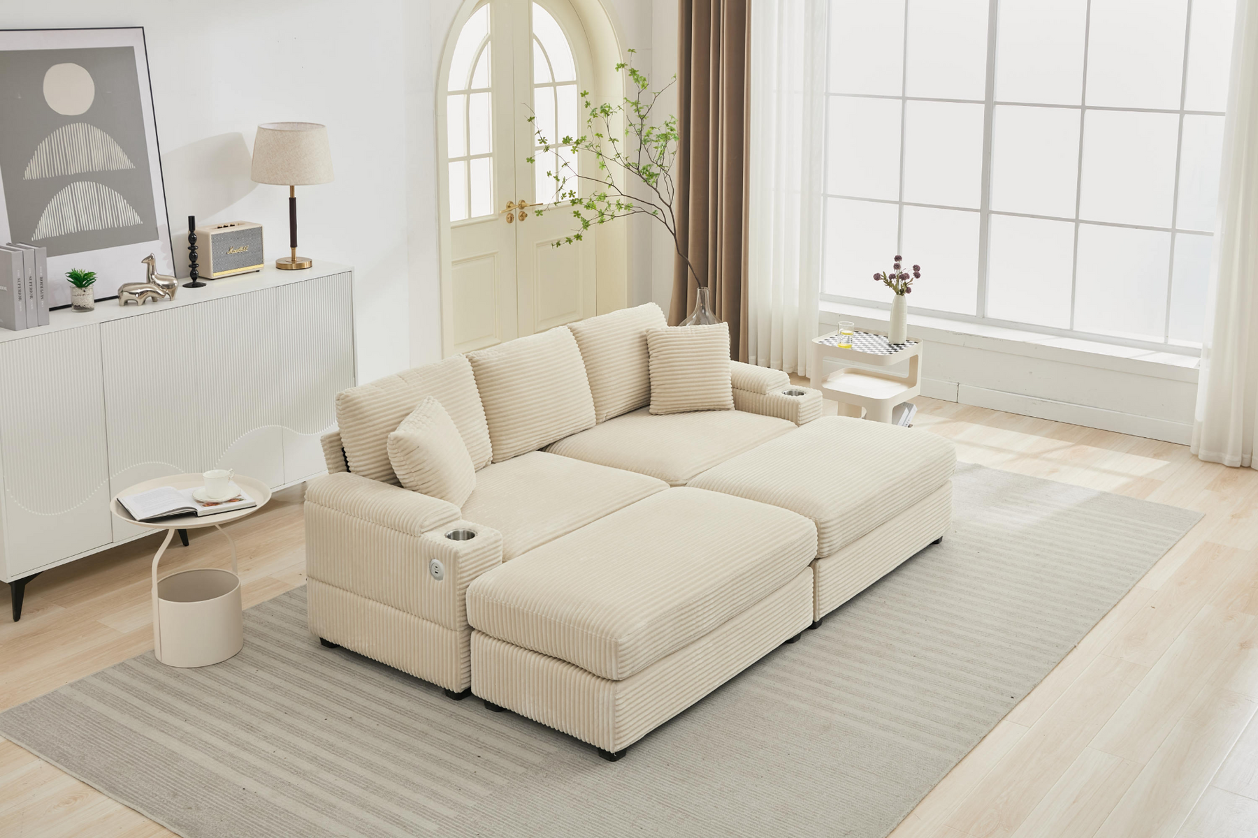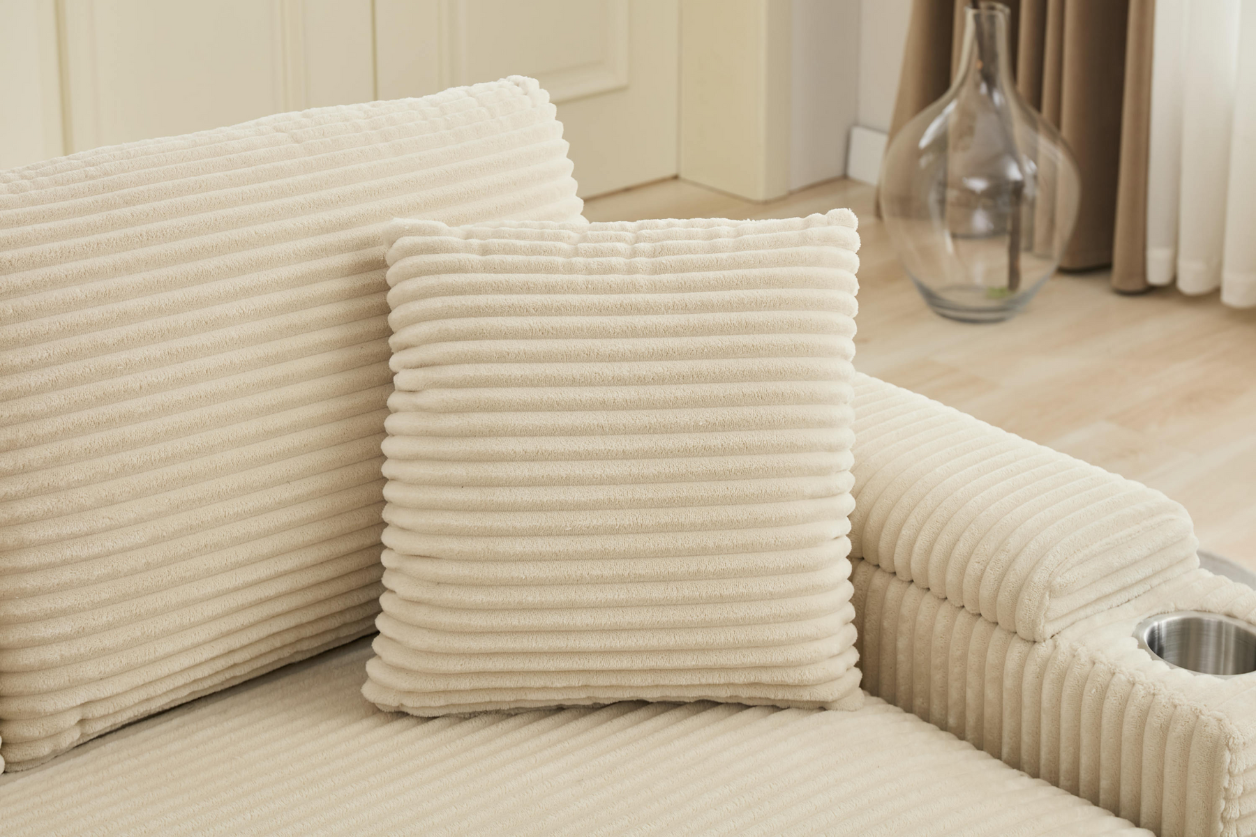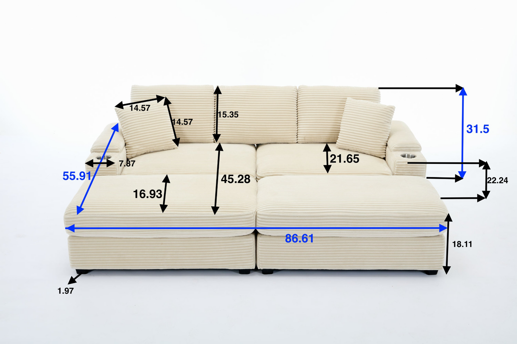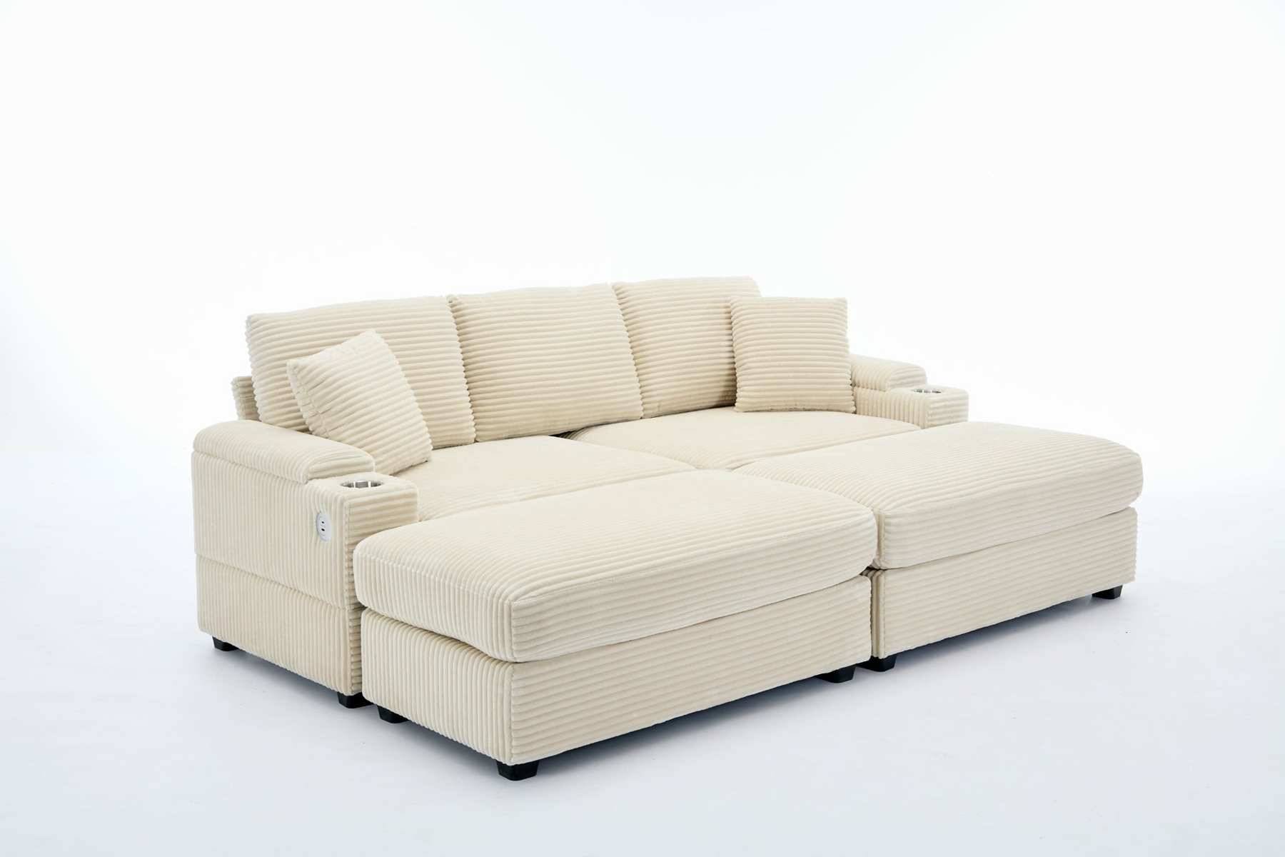 Superior Comfort: Upholstered in premium corduroy fabric with high-quality foam filling. The thick cushioned backrest and seat ensure prime relaxation. Stretch out your legs on the ottomans or customize the placement of the 2 pillows for added support.