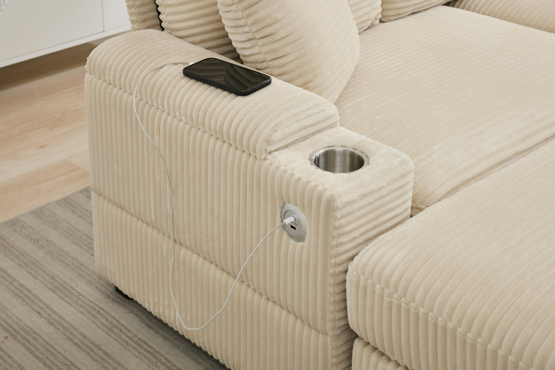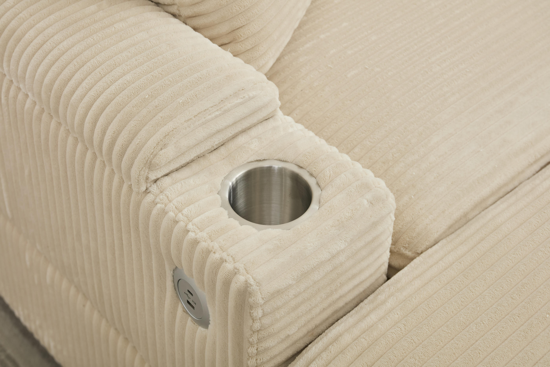 USB Charging Port & Cup Holders: Features USB ports to keep your devices charged and stainless steel cup holders for your beverages.