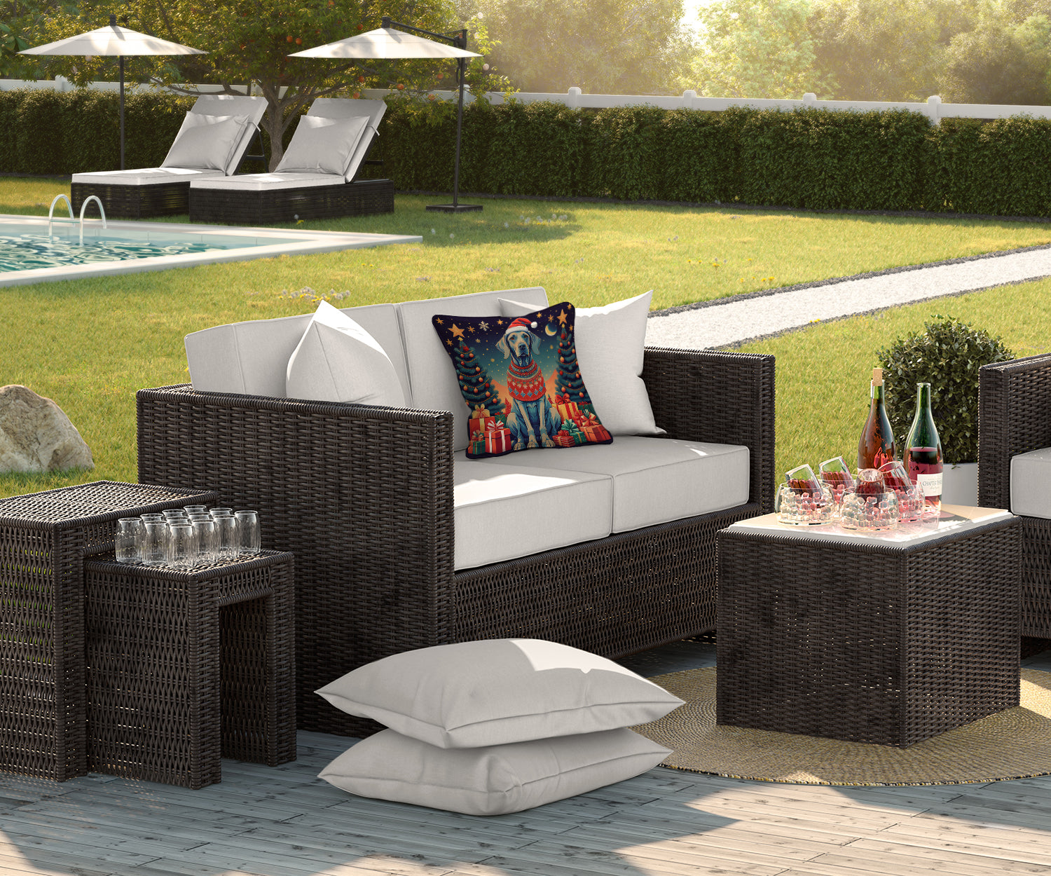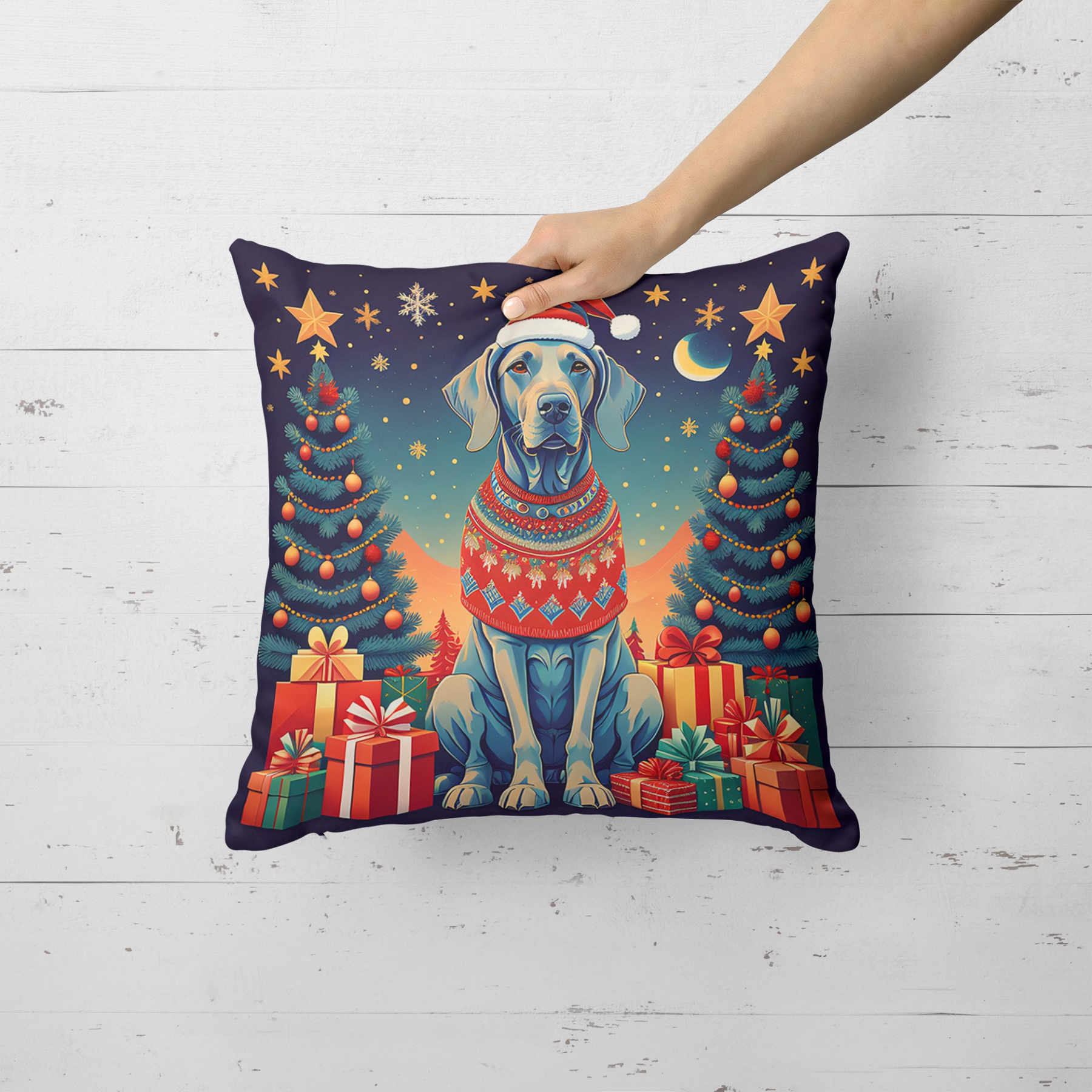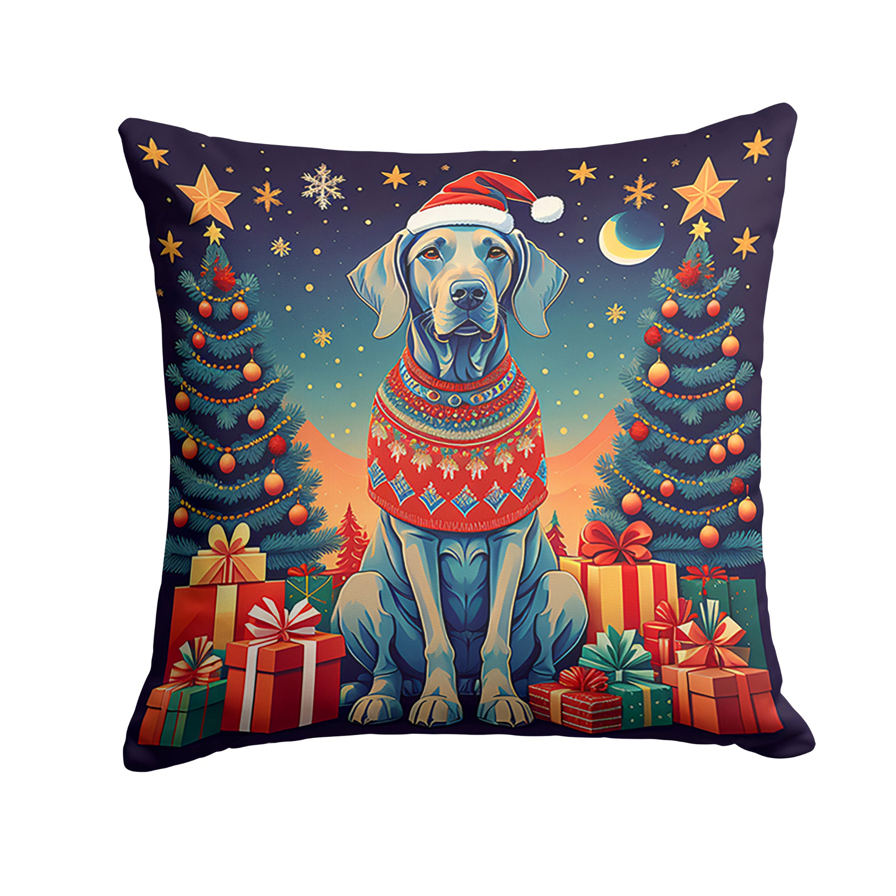 Revitalize your living space this holiday season with the Weimaraner Christmas Throw Pillow and enjoy a blend of comfort, durability, and festive charm.