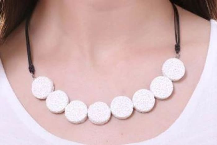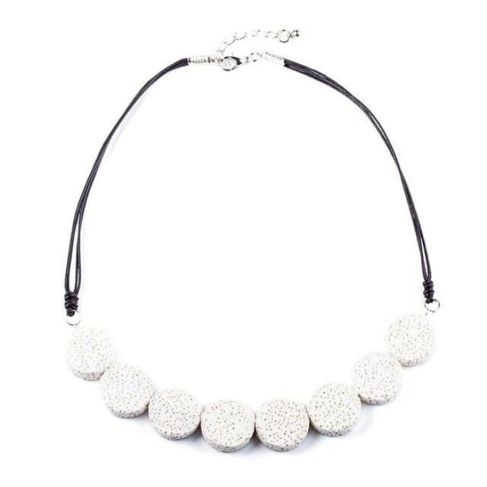 Enjoy the fusion of style and aromatherapy with the White Tablet Beads Lava Stone Essential Oils Necklace. Order yours today and elevate your everyday ensemble!