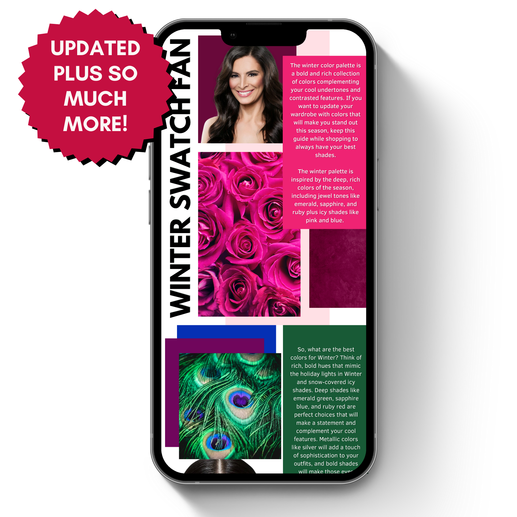 Introducing the NEW Winter Digital Swatch Download! The ultimate solution for your seasonal color analysis. This digital download features an expertly curated palette with 48 best shades tailored to complement your skin tone, eye color, and hair color. Say goodbye to color confusion and embrace effortless style!